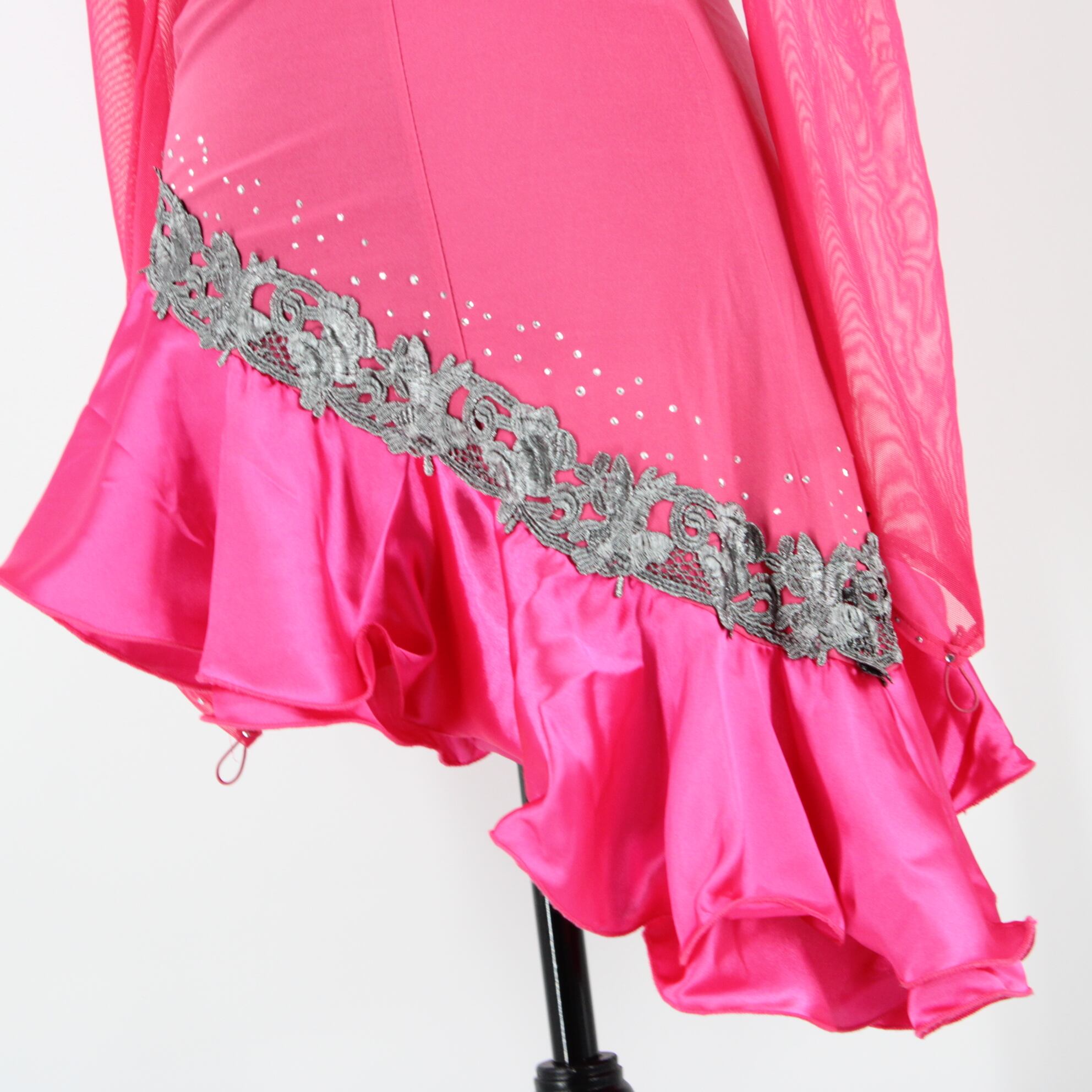 【美品 社交ダンス衣装】ワンピース ドレス ピンク ラインストーン かわいい レース フェミニン 上品 可愛い 清楚 華やか