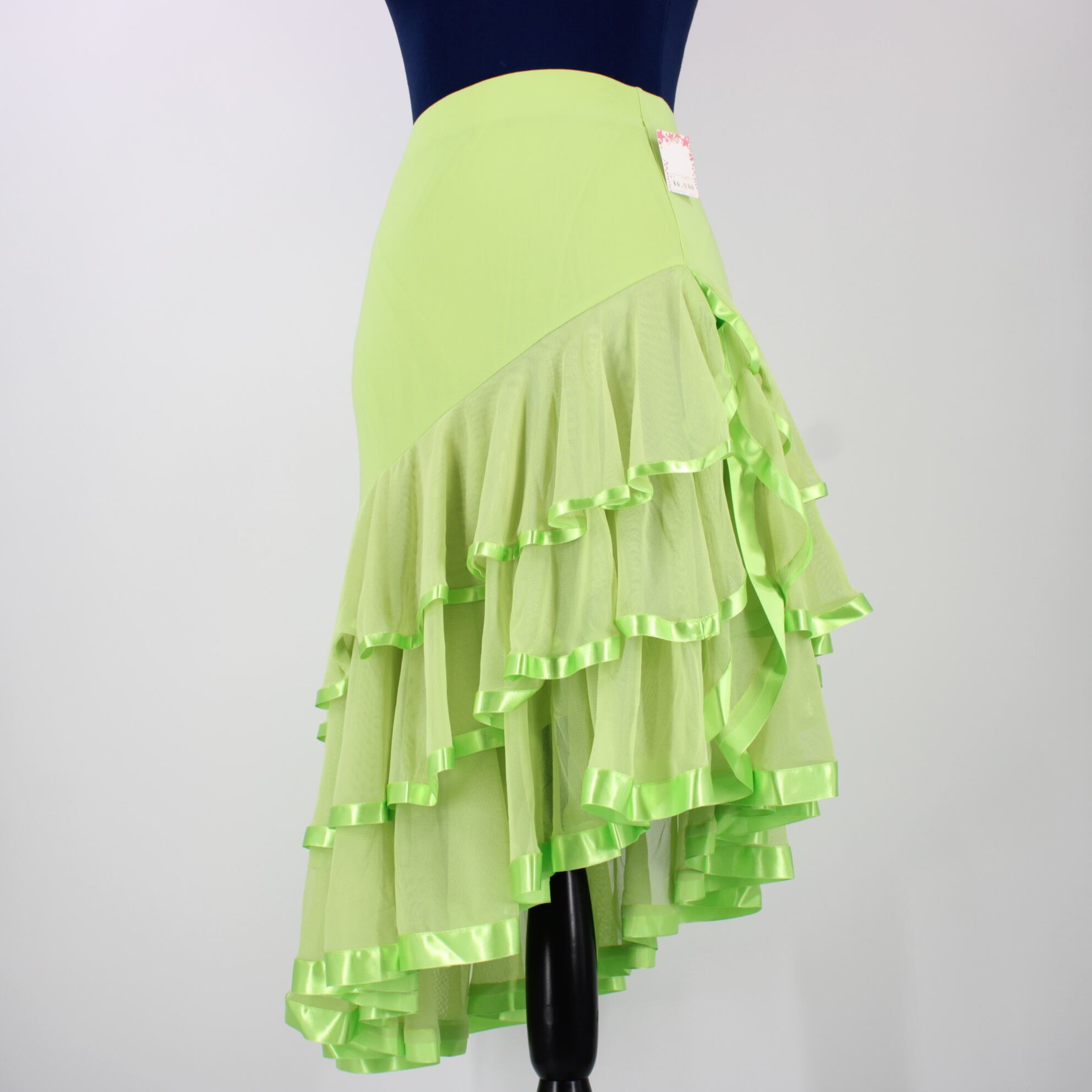 【美品 社交ダンス衣装】スカート 黄緑 ライトグリーン フリル 透け感 シースルー レース かわいい 可愛い フェミニン 清楚