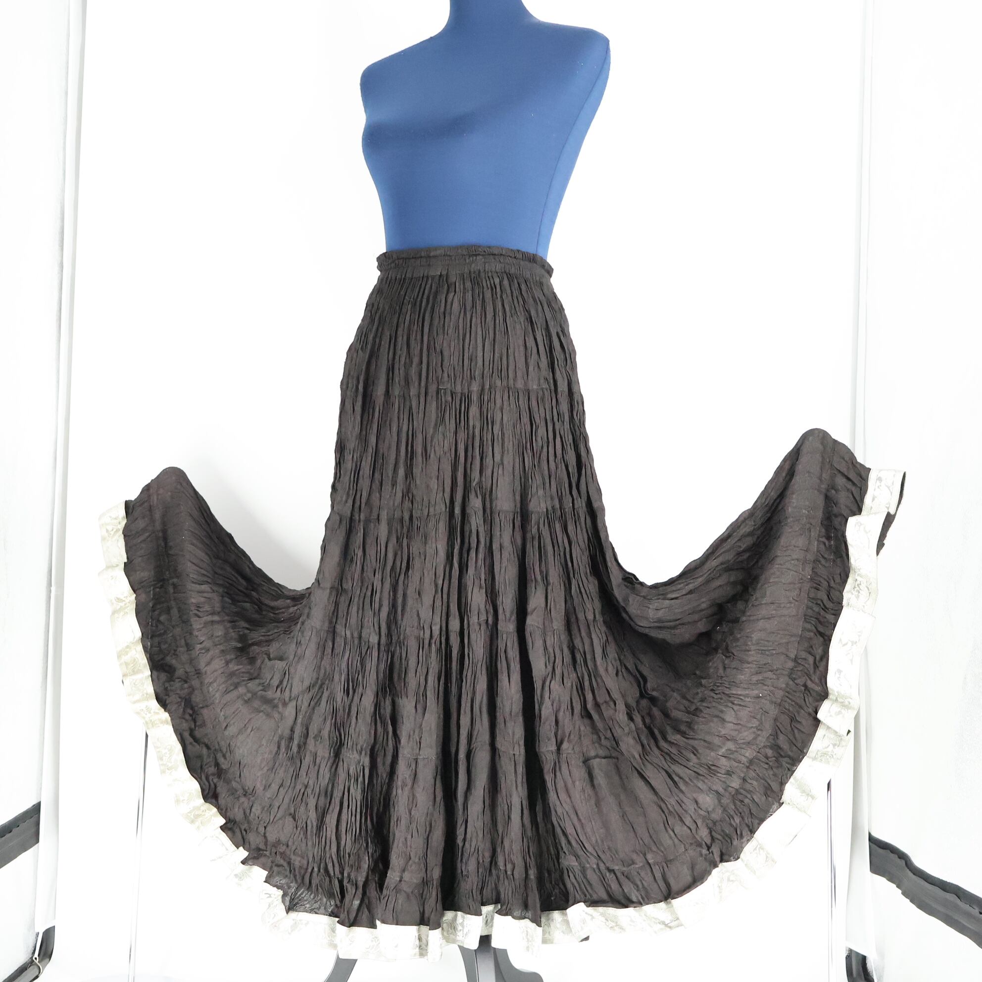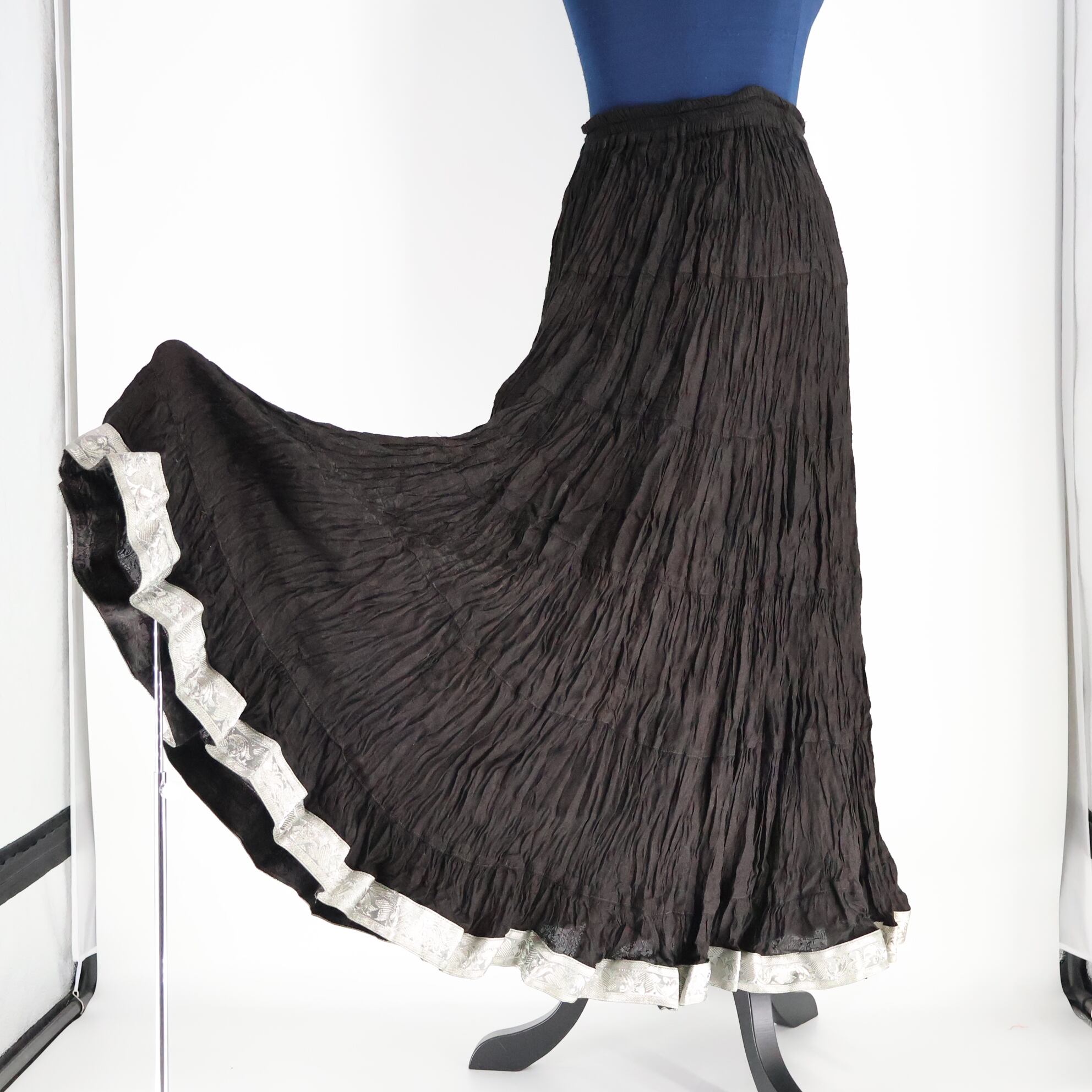【インド製 ベリーダンス用衣装】ブラック ジプシースカート 黒 シルバー レース生地 フリル 異国情緒 ロング シンプル 柄