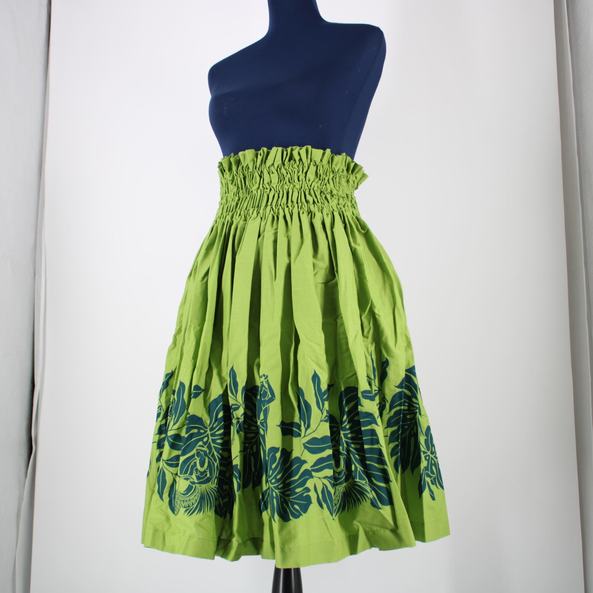 【美品 日本製 フラダンス衣装】ライトグリーン パウスカートショップ パウスカート 黄緑 モンステラ柄 爽やか ハワイアン 緑
