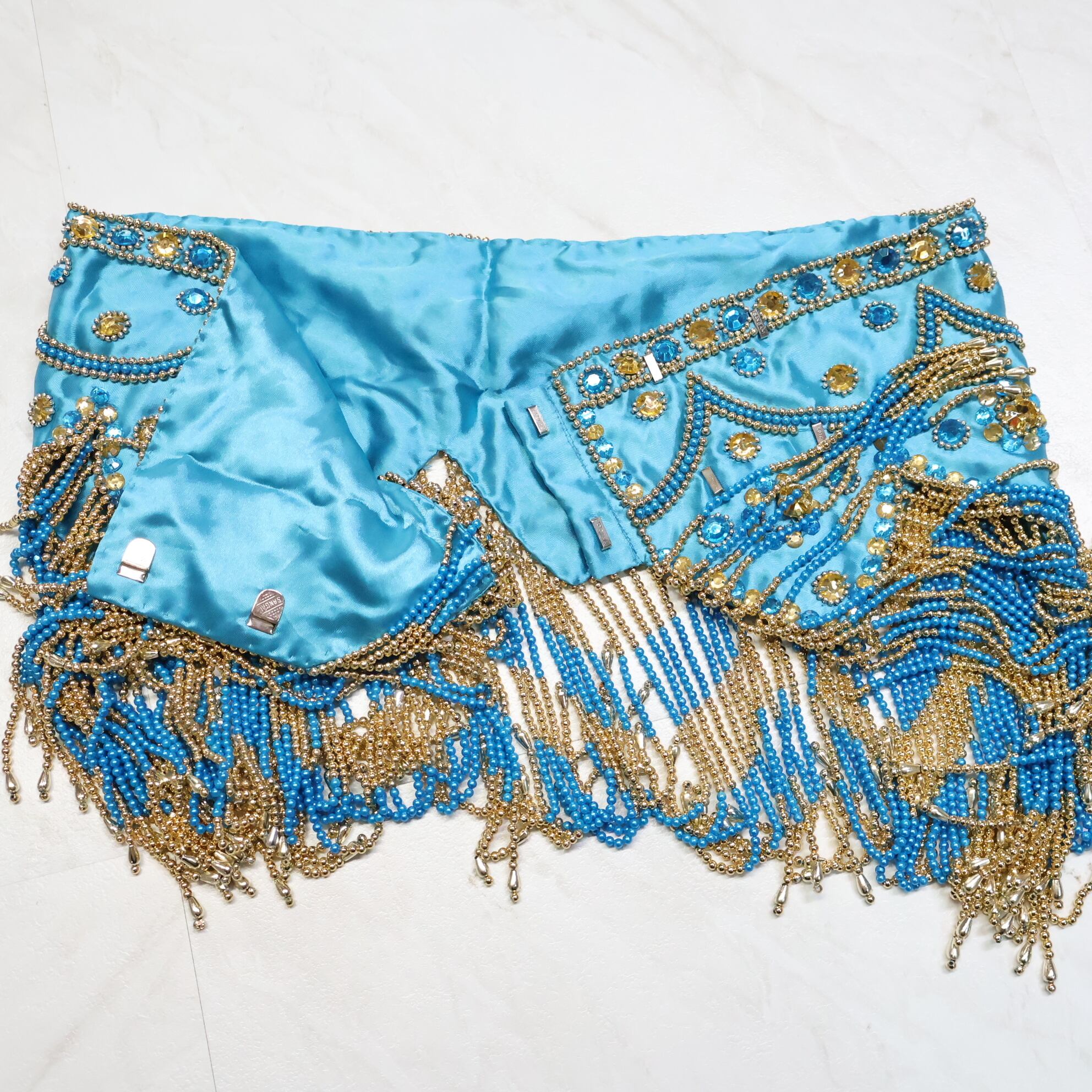 #ベリーダンス #オリエンタル衣装 #水色コスチューム #ゴールド装飾 #ラインストーン #ビーズ装飾 #煌びやか #エレガントスタイル #ラメ生地 #華やか #ダンスファッション #ブラトップ #ベルトセット #爽やかデザイン #女性らしい #ステージ衣装 #パフォーマンス用 #特別なイベント #個性的デザイン #ブルー衣装 #ダンス衣装 #ダンスコスチューム #ステージ衣装 #古着 #中古 #ENUTSU