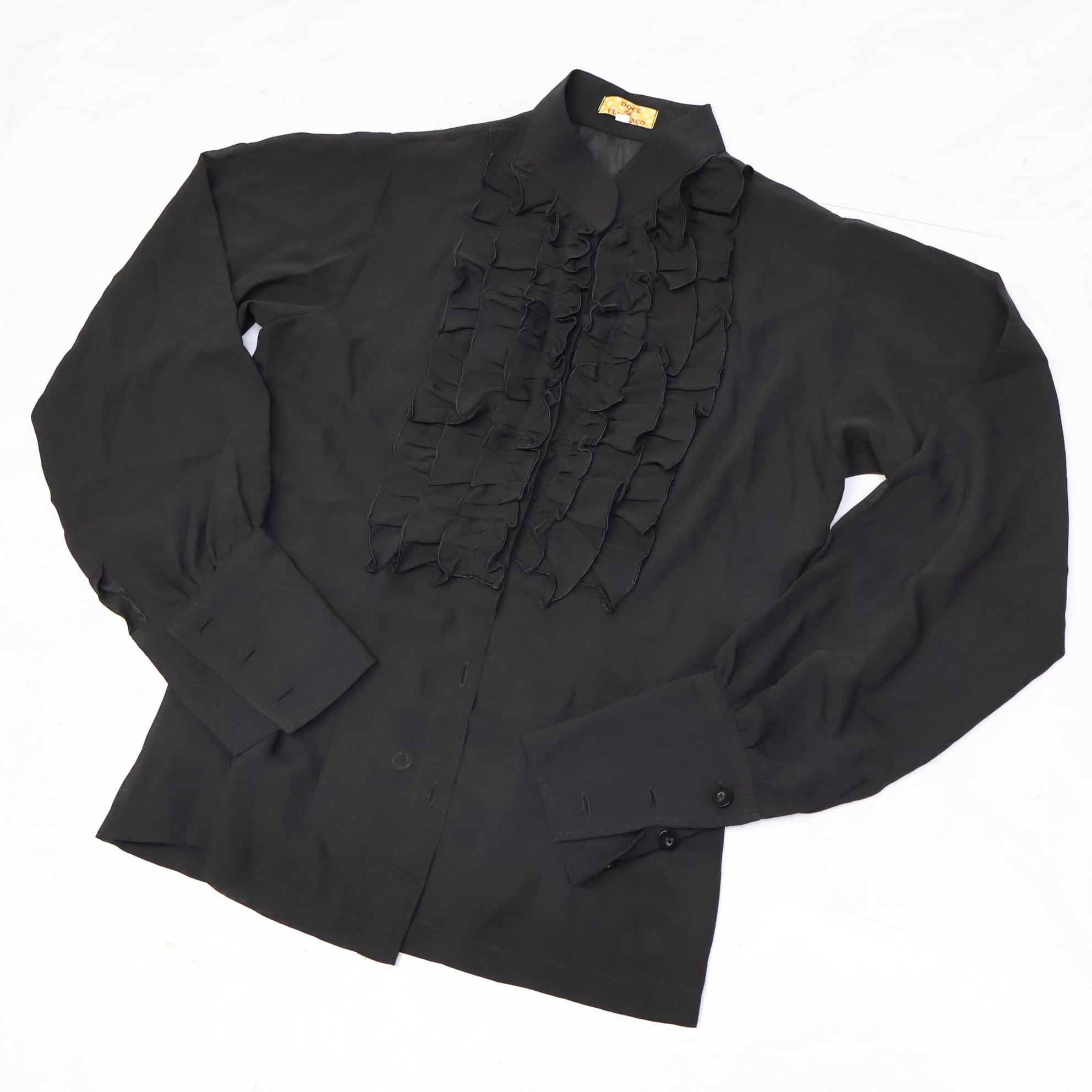 【美品 フラメンコ衣装】ブラック docedelflamenco ドセデルフラメンコ ブラウス トップス 黒 長袖 フリル 透け感 襟 ボタン