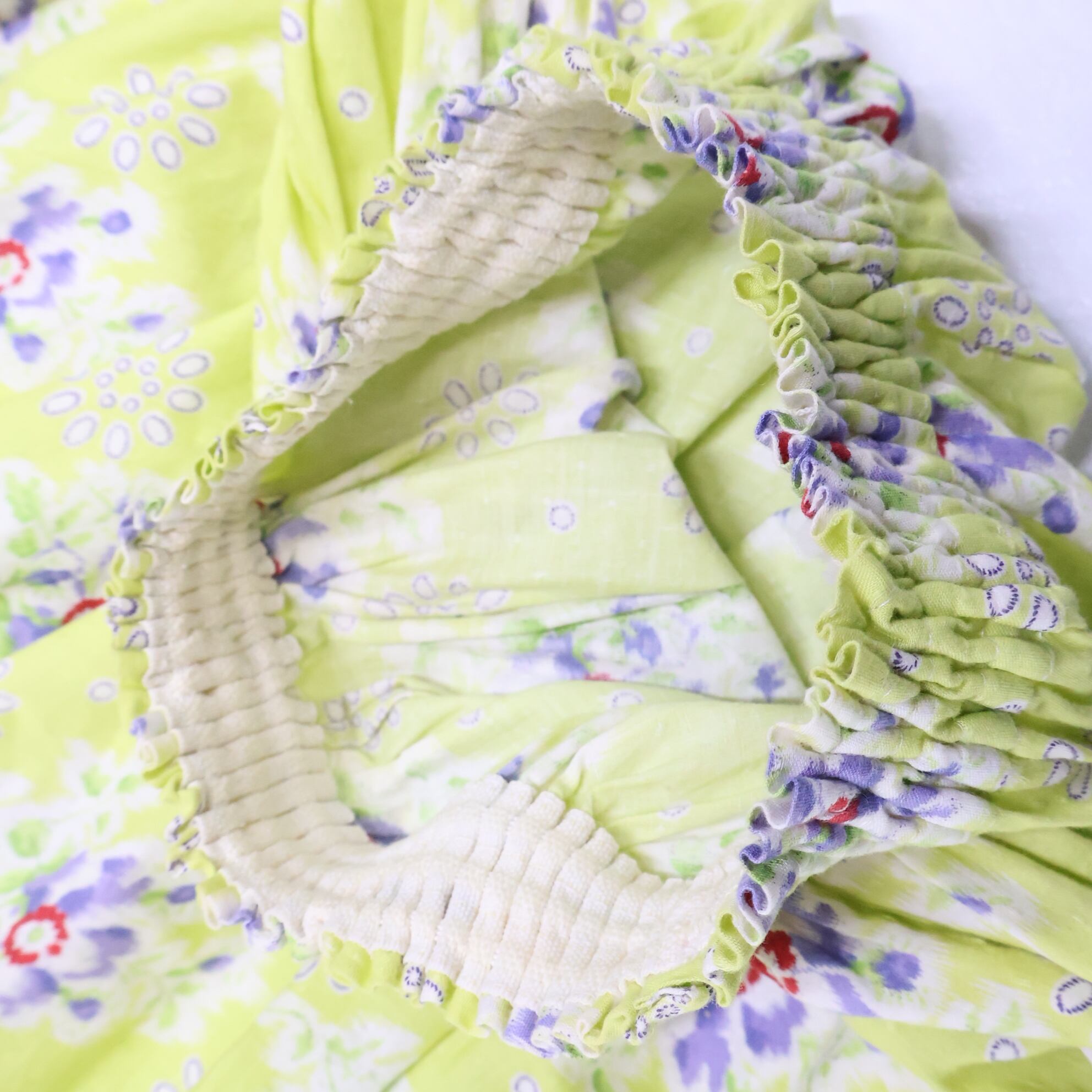 【美品 日本製 フォークダンス衣装】ライトグリーン YUWA LIVE LIFE COLLECTION 大同マルタ スカート 花柄 黄緑 カントリー