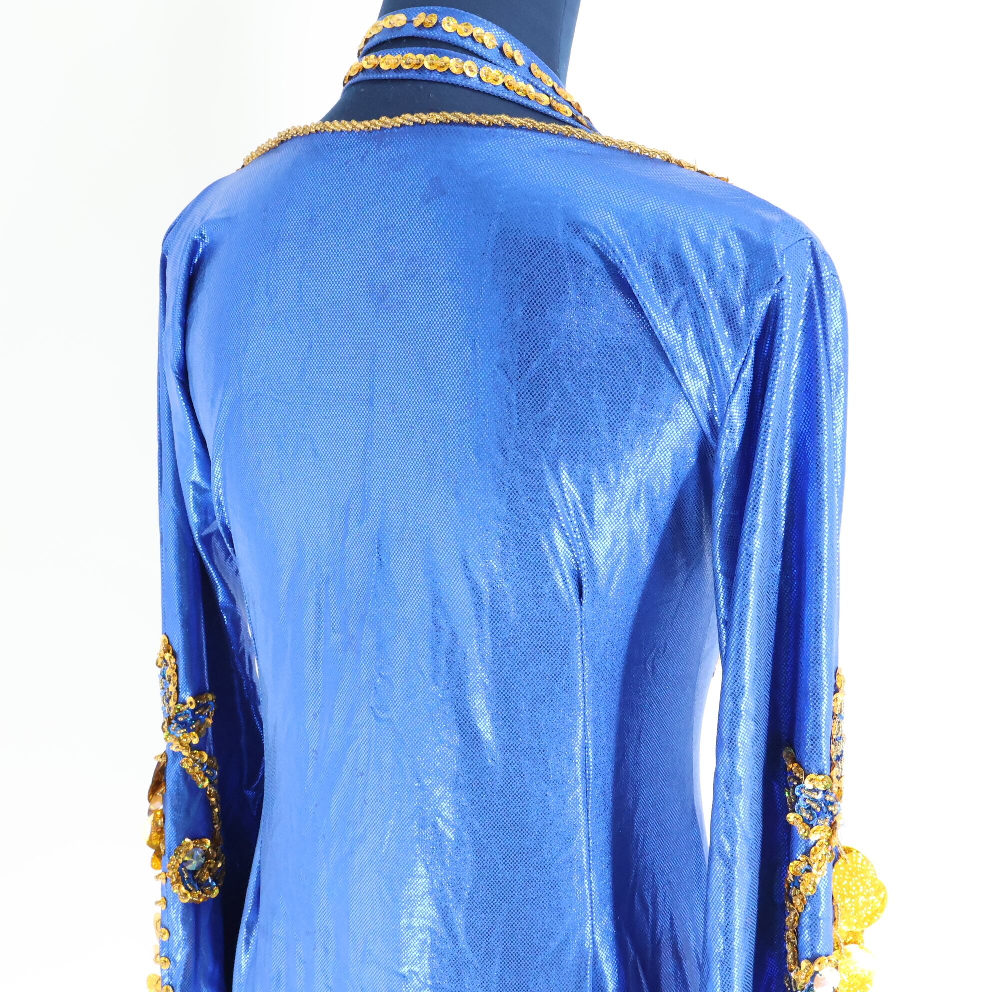 #ベリーダンス #バラディドレス #ブルー衣装 #ゴールド装飾 #スパンコール #ラメ生地 #左右スリット #ブラトップ #スカートセット #光沢感 #セクシーデザイン #華やか衣装 #エレガント #パフォーマンス用 #ダンスファッション #特別なイベント #豪華デザイン #ステージ衣装 #個性的コスチューム #煌びやか #ダンス衣装 #ダンスコスチューム #古着 #中古 #ENUTSU