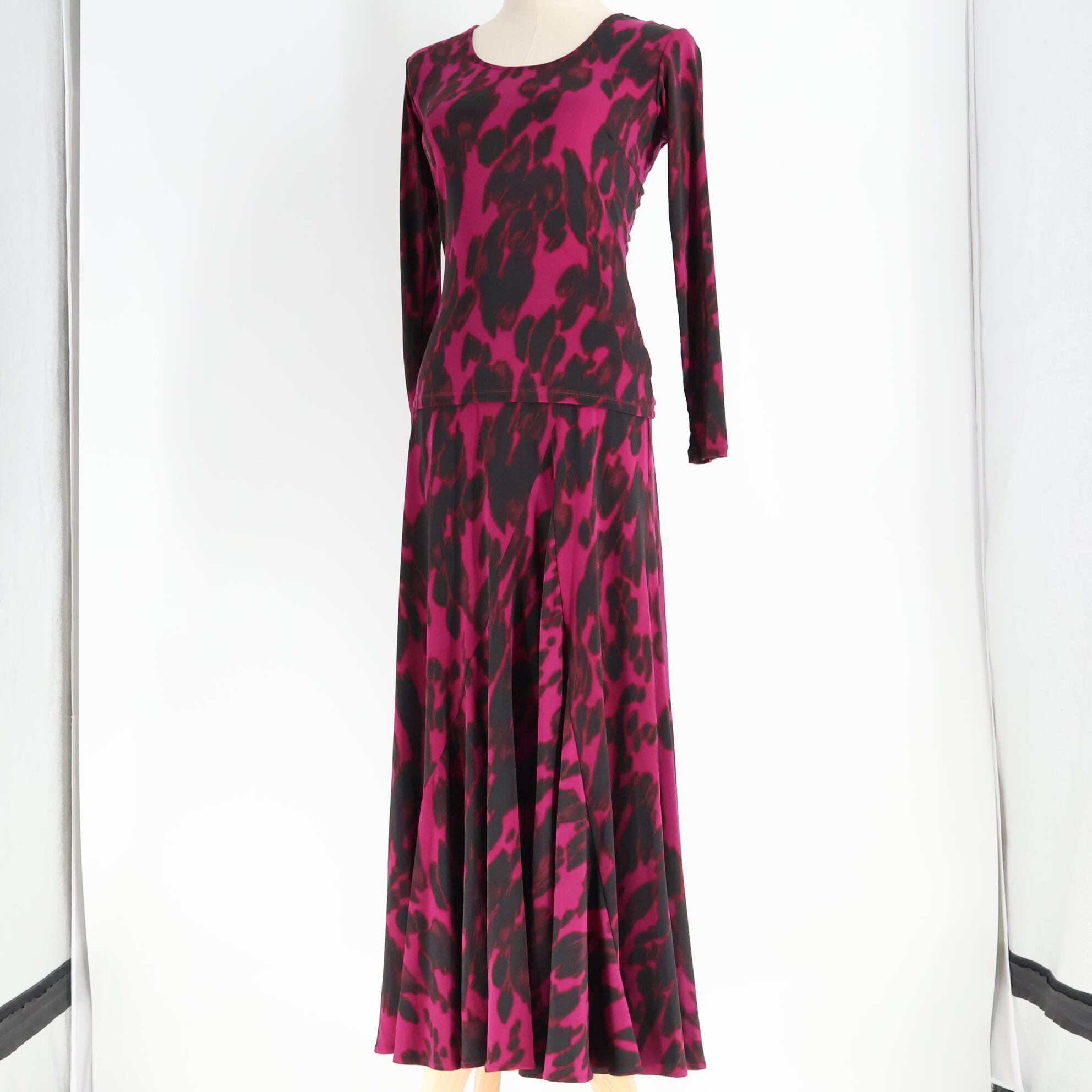 #社交ダンス衣装 #パープル衣装 #上下セット #チャコット #ダンスツーピース #長袖トップス #スカートセット #模様デザイン #黒トップス #日本製 #練習用衣装 #ステージ衣装 #舞台衣装 #ダンスコスチューム #エレガントファッション #パフォーマンス衣装 #ダンスウェア #中古衣装 #古着 #ダンスファッション