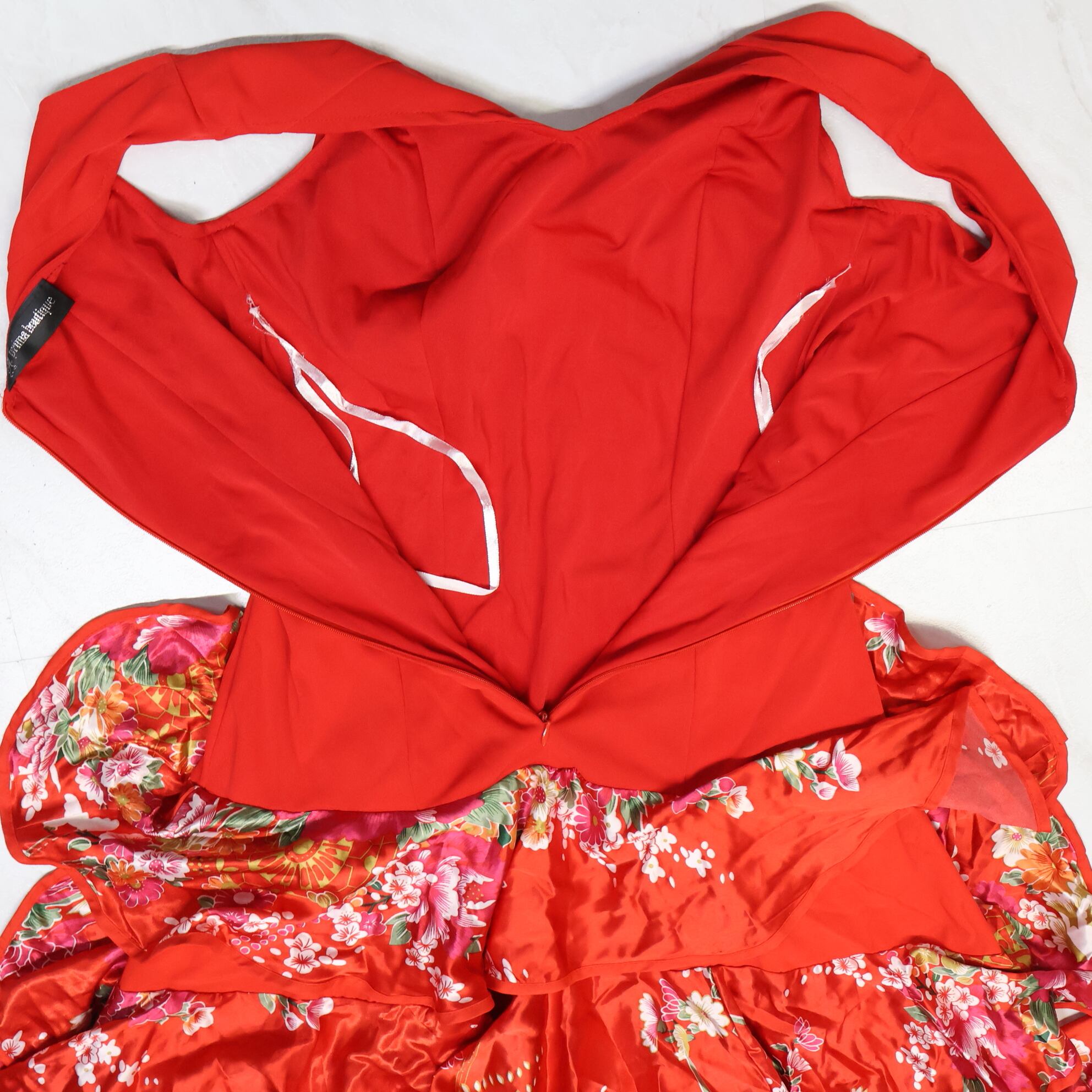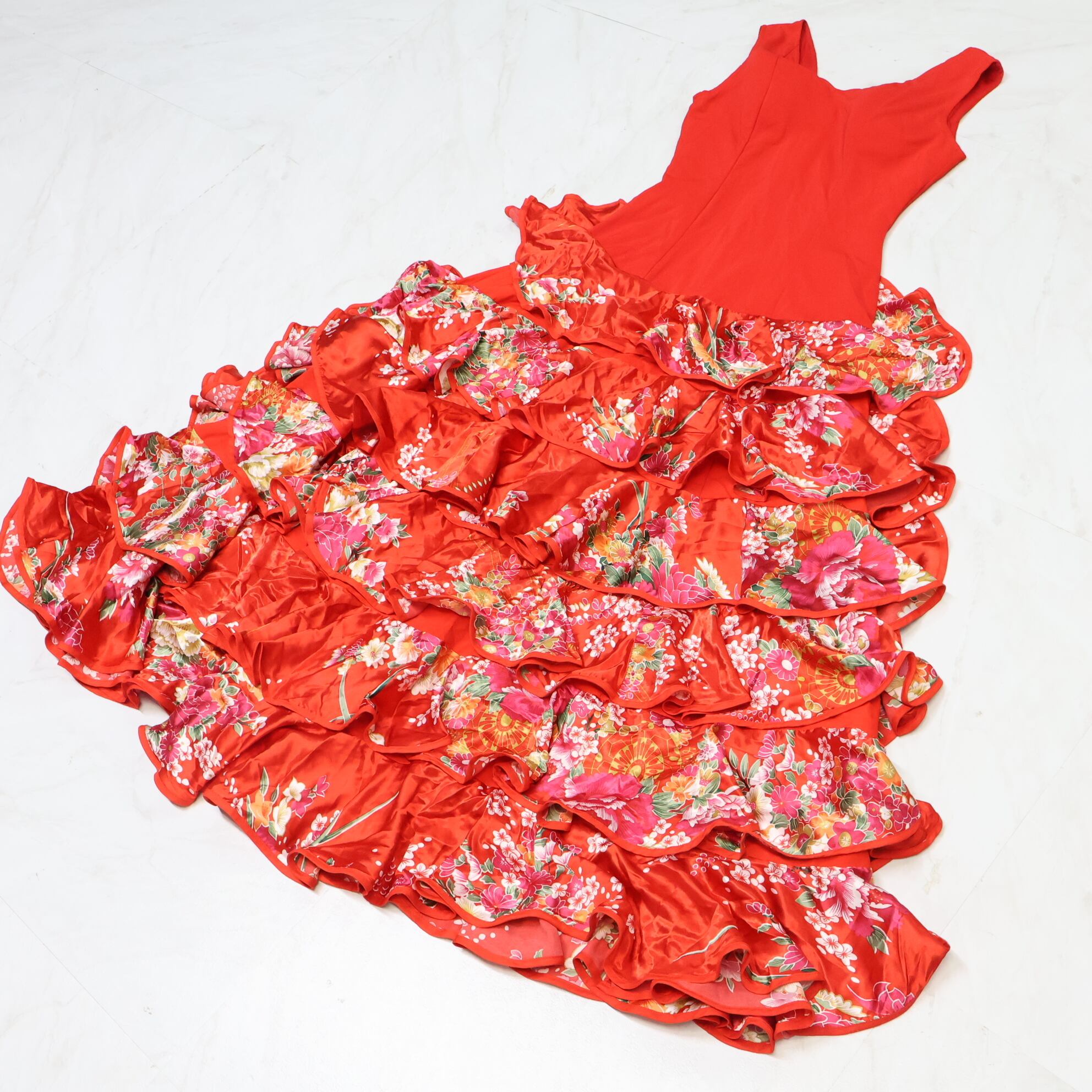 【美品 フラメンコ衣装】レッド prima boutique プリマブティック ワンピース ドレス 赤 ボランテ 花柄 光沢 段々 袖なし ダンス用 レディース タンクトップ 発表会 光沢 胸パッド 舞台 劇 華やか 豪華