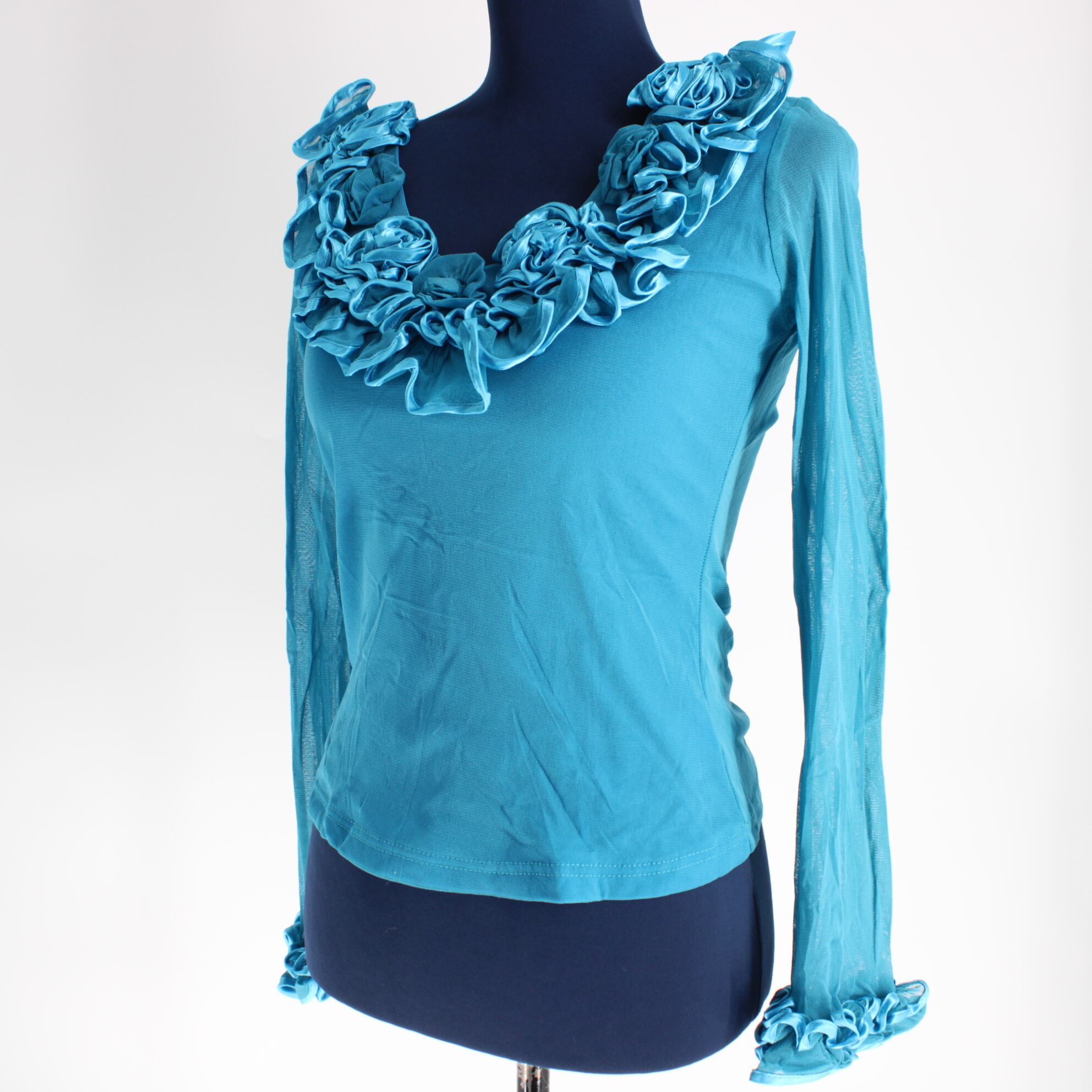 【美品 社交ダンス衣装】トップス ICHIOKU イチオク ターコイズブルー 水色 ライトブルー フリル かわいい 青 可愛い 上品