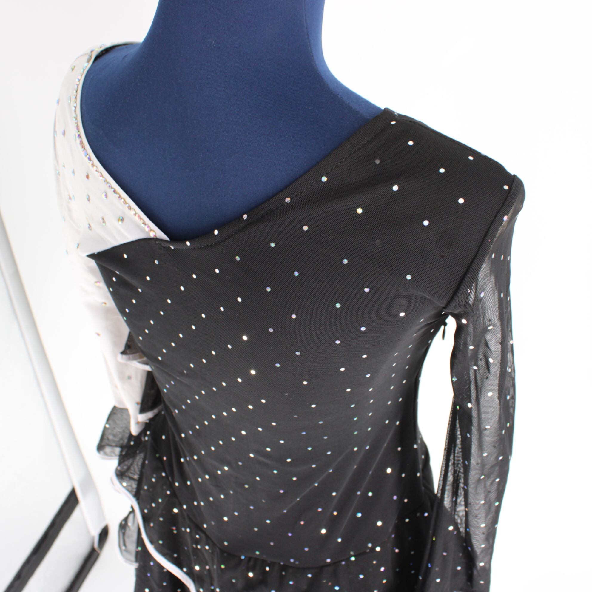 【美品 社交ダンス衣装】ワンピース ドレス ICHIOKU イチオク 黒 白 ブラック ホワイト ラインストーン ホログラム 上品 清楚