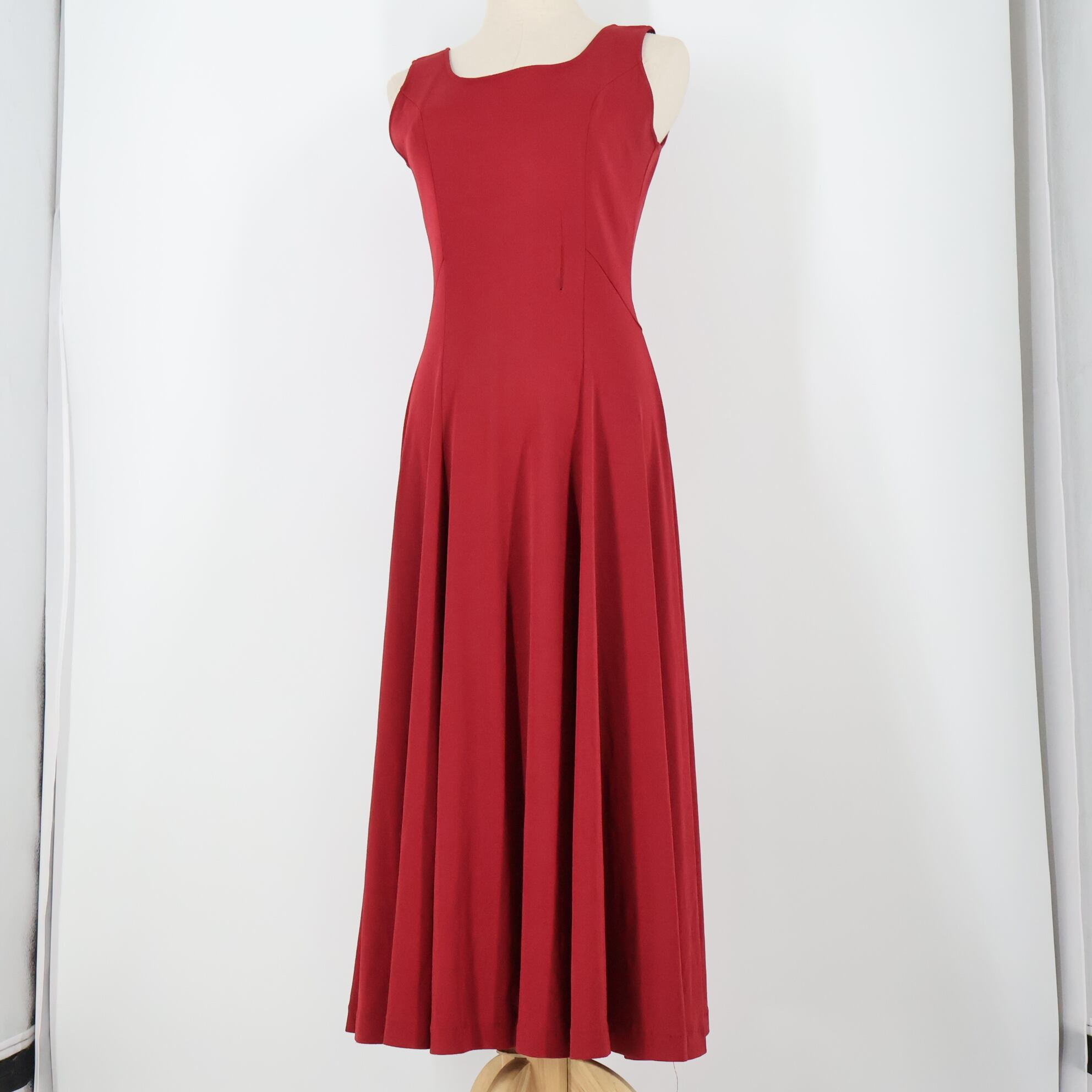 【日本製 社交ダンス衣装】ワインレッド Chacott チャコット ワンピース ドレス 赤 ノースリーブ 無地 高級感 上品 綺麗