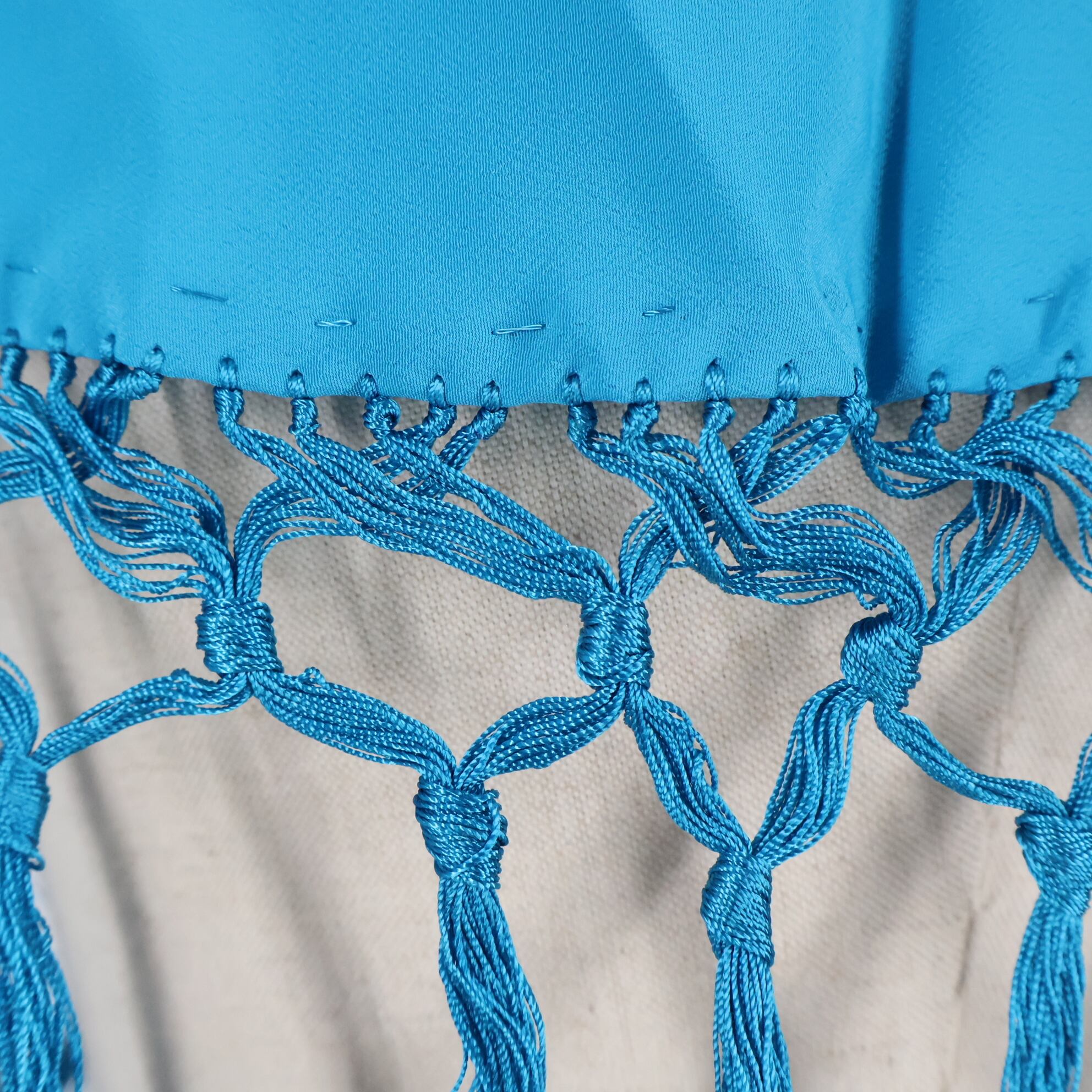 【美品 フラメンコ衣装】ブルー シージョ ピキージョ マントン フレコ 青 水色 無地 フリンジ 濃い水色 カーブ型 小物 装飾