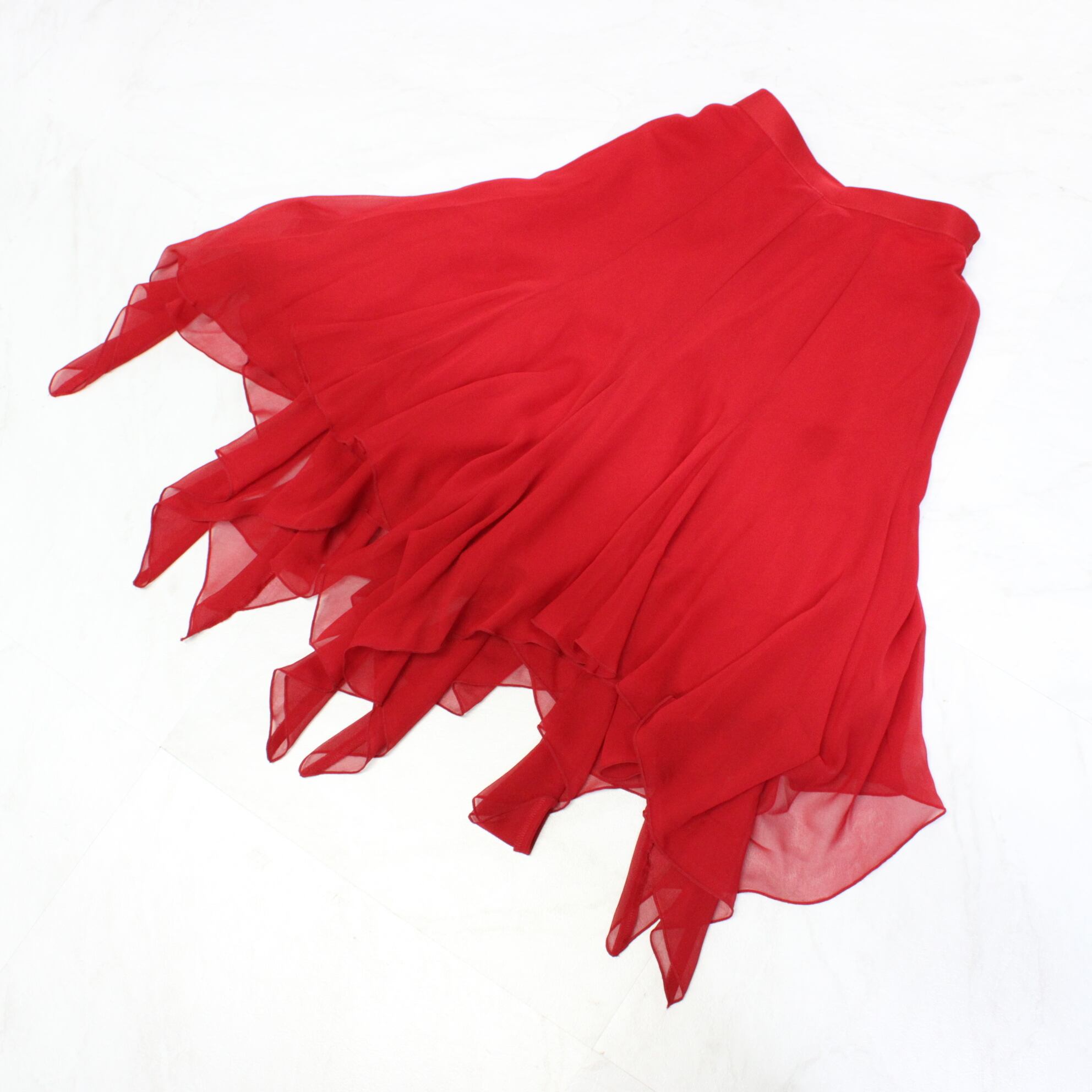 【美品 日本製社交ダンス衣装】スカート Sanline サンリーヌ Mサイズ 赤 レッド 無地 シンプル 透け感 シースルー かわいい