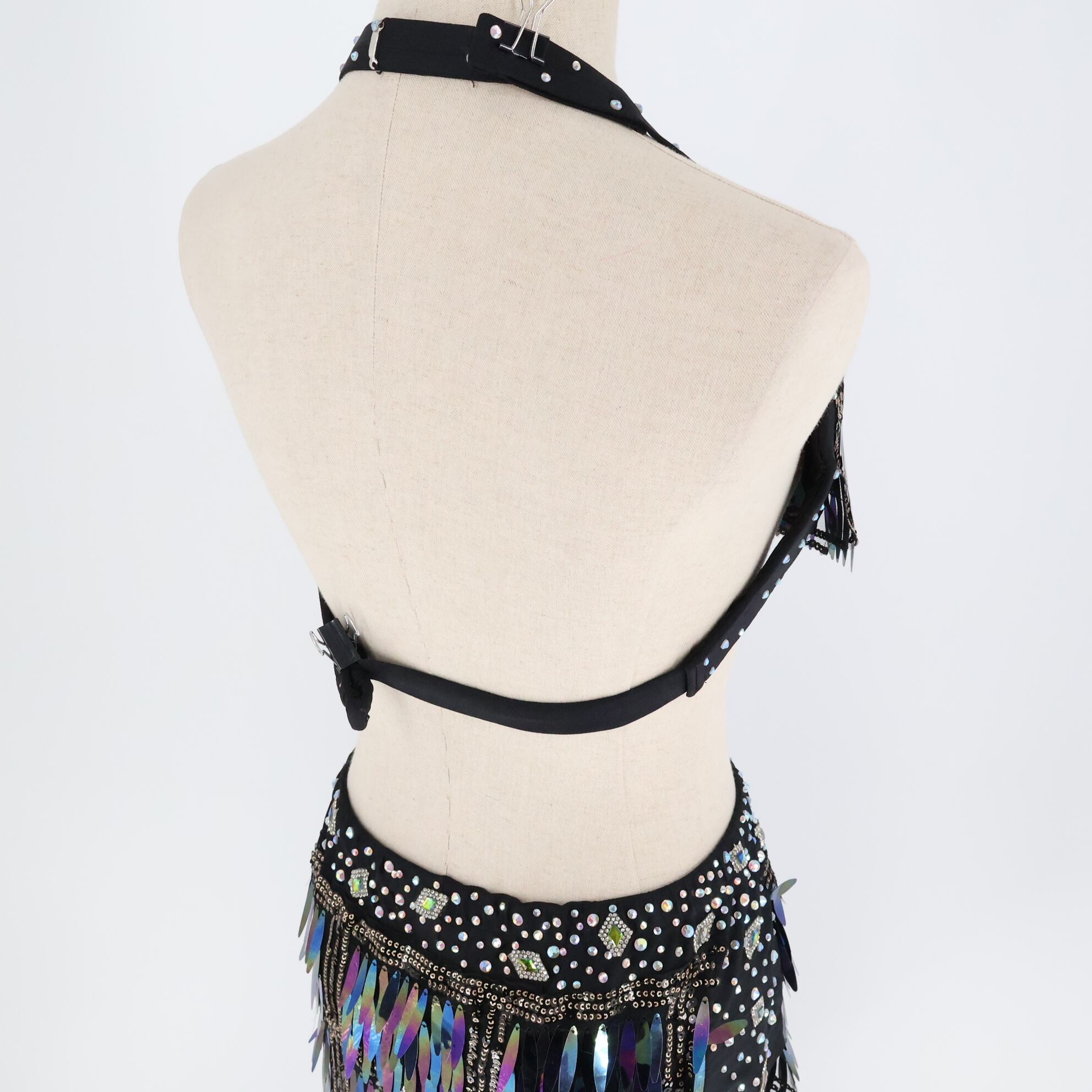 #ベリーダンス #ダンス衣装 #オリエンタルスタイル #ブラックコスチューム #ラインストーン #豪華衣装 #煌びやか #ラメ素材 #セクシーダンス #ステージ衣装 #ショート丈トップス #スリットスカート #シルバーアクセント #ショーツ付き #ブラトップセット #ダンサー必見 #パフォーマンス衣装 #アラビアンスタイル #イベント衣装 #フュージョンダンス #ダンス衣装 #ダンスコスチューム #ステージ衣装 #古着 #中古 #ENUTSU