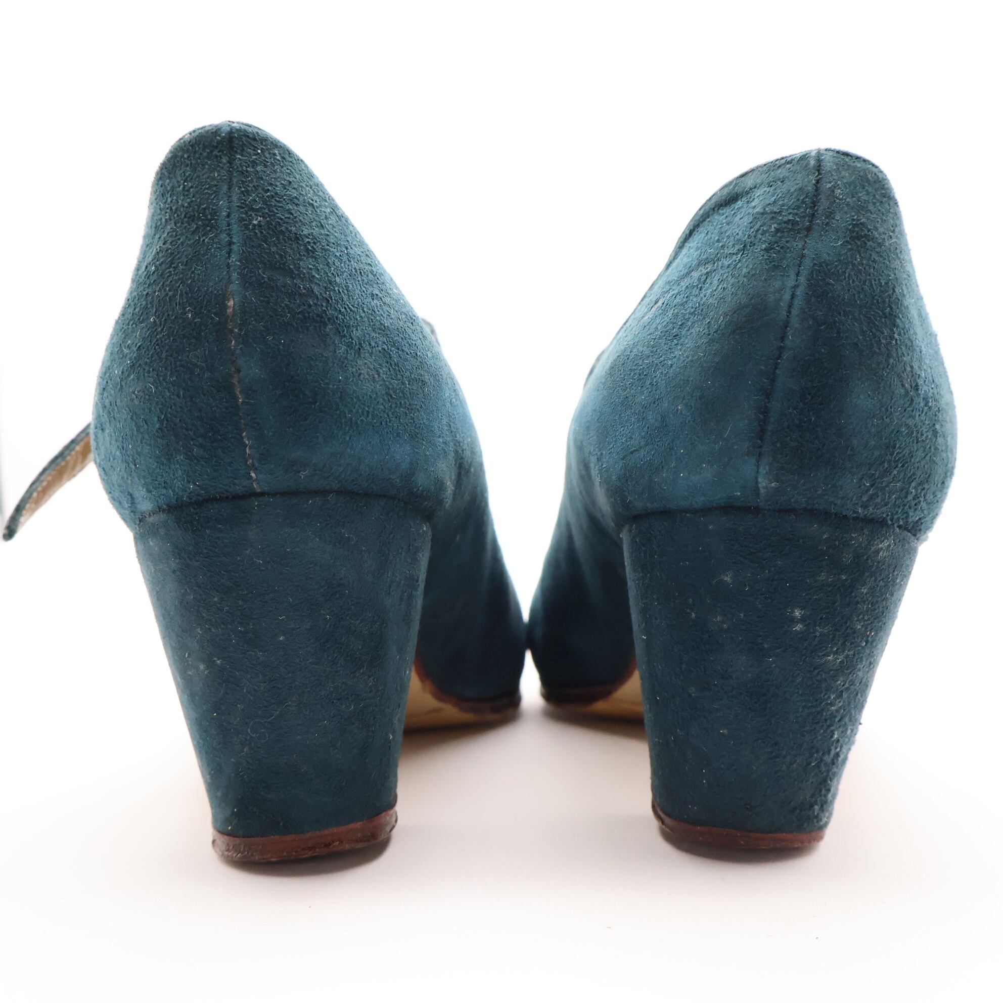 #フラメンコシューズ #スペイン製 #ダンスシューズ #ステージ用 #ブルースエード #ヒール付き #タップシューズ #発表会用靴 #女性用ダンスシューズ #ベルト付き靴 #緑アクセント #中古ダンス用品 #舞台用シューズ #フラメンココスチューム #青い靴 #釘付き靴 #踊り用シューズ #スペイン文化 #ダンス衣装小物 #ENUTSU