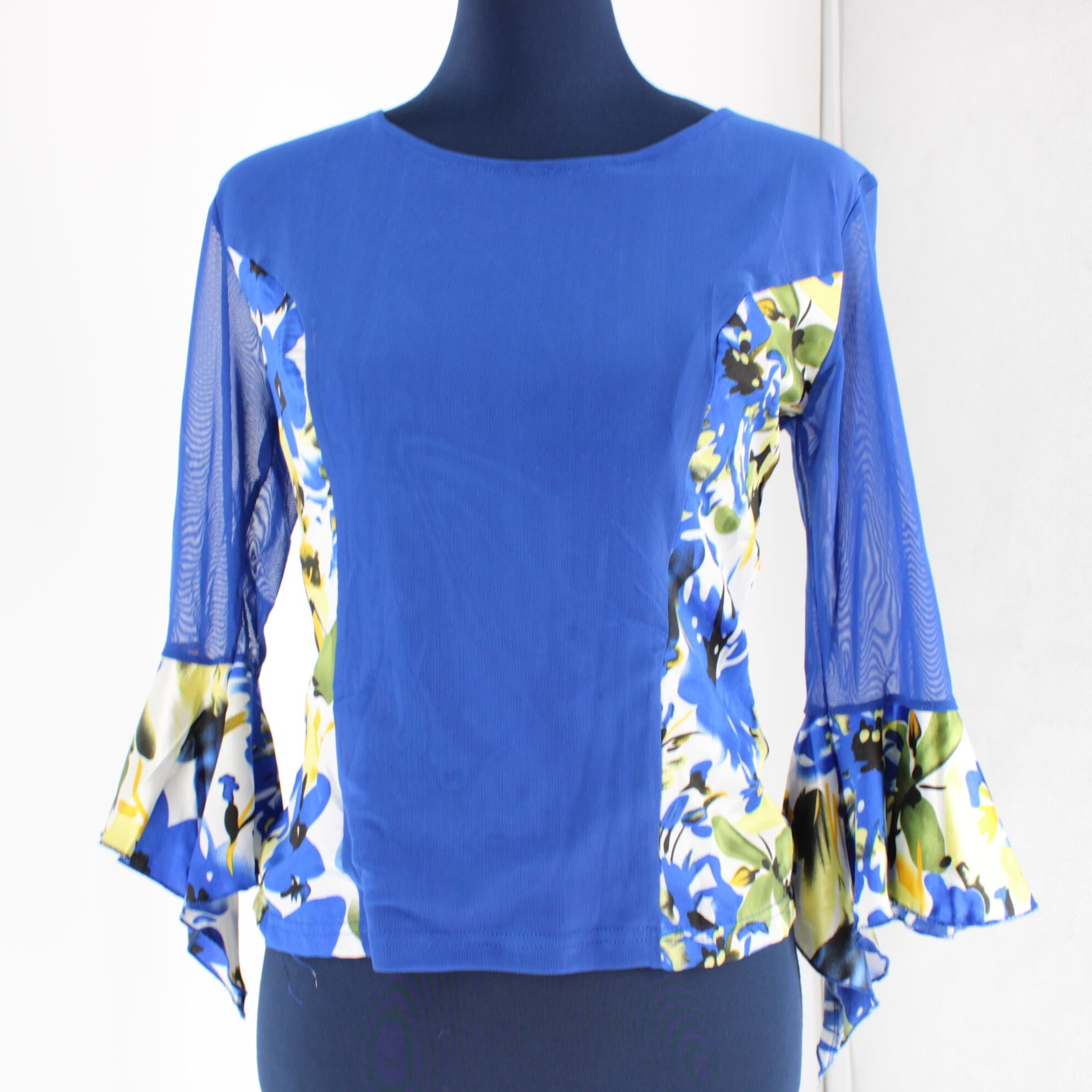 【美品 社交ダンス衣装】トップス ICHIOKU イチオク 青 ブルー 白 ホワイト 黄色 イエロー ブラック 黒 緑 グリーン 花柄