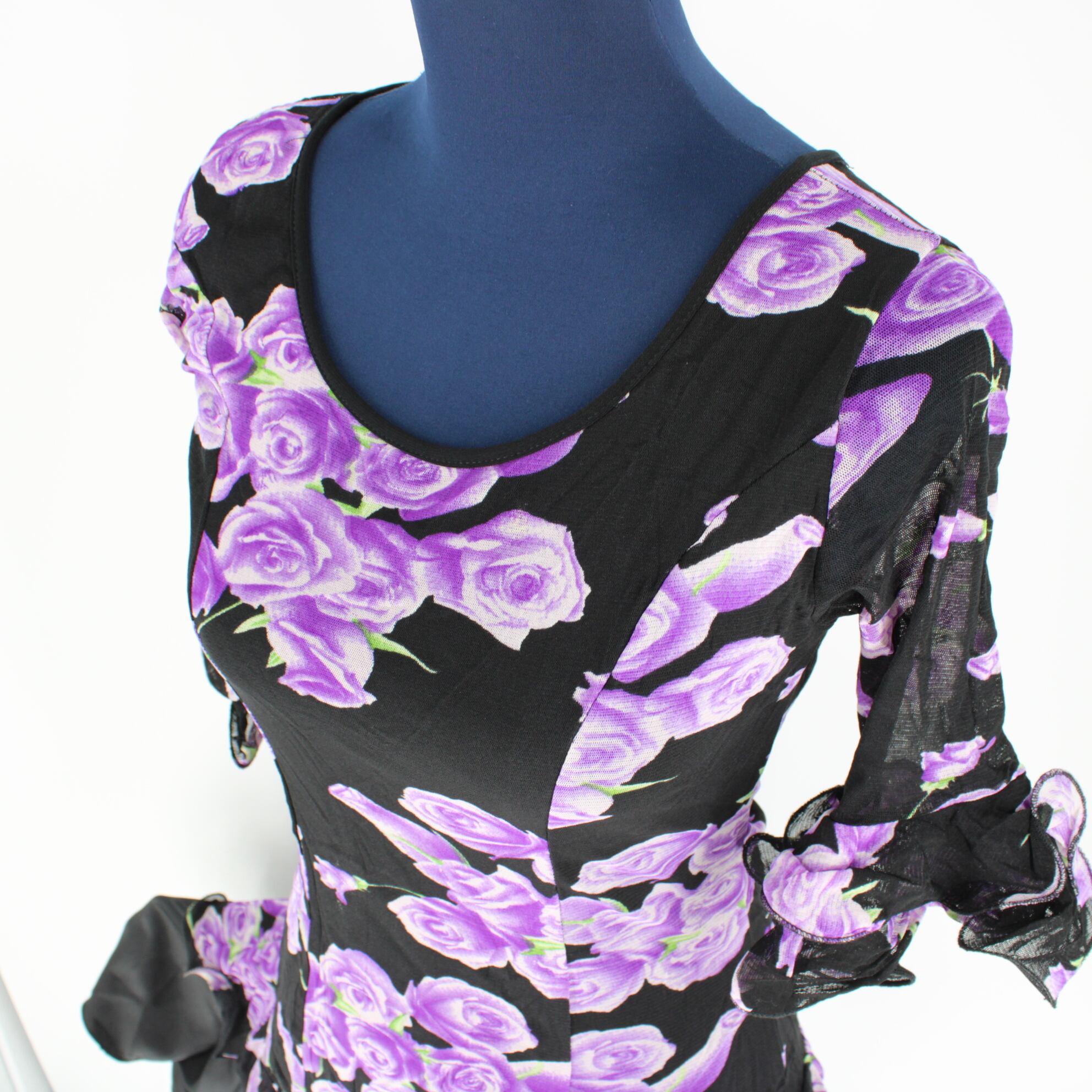 【美品 社交ダンス衣装】ワンピース ドレス ICHIOKU イチオク 黒 紫 ブラック パープル 花柄 かわいい 可愛い 上品 フェミニン