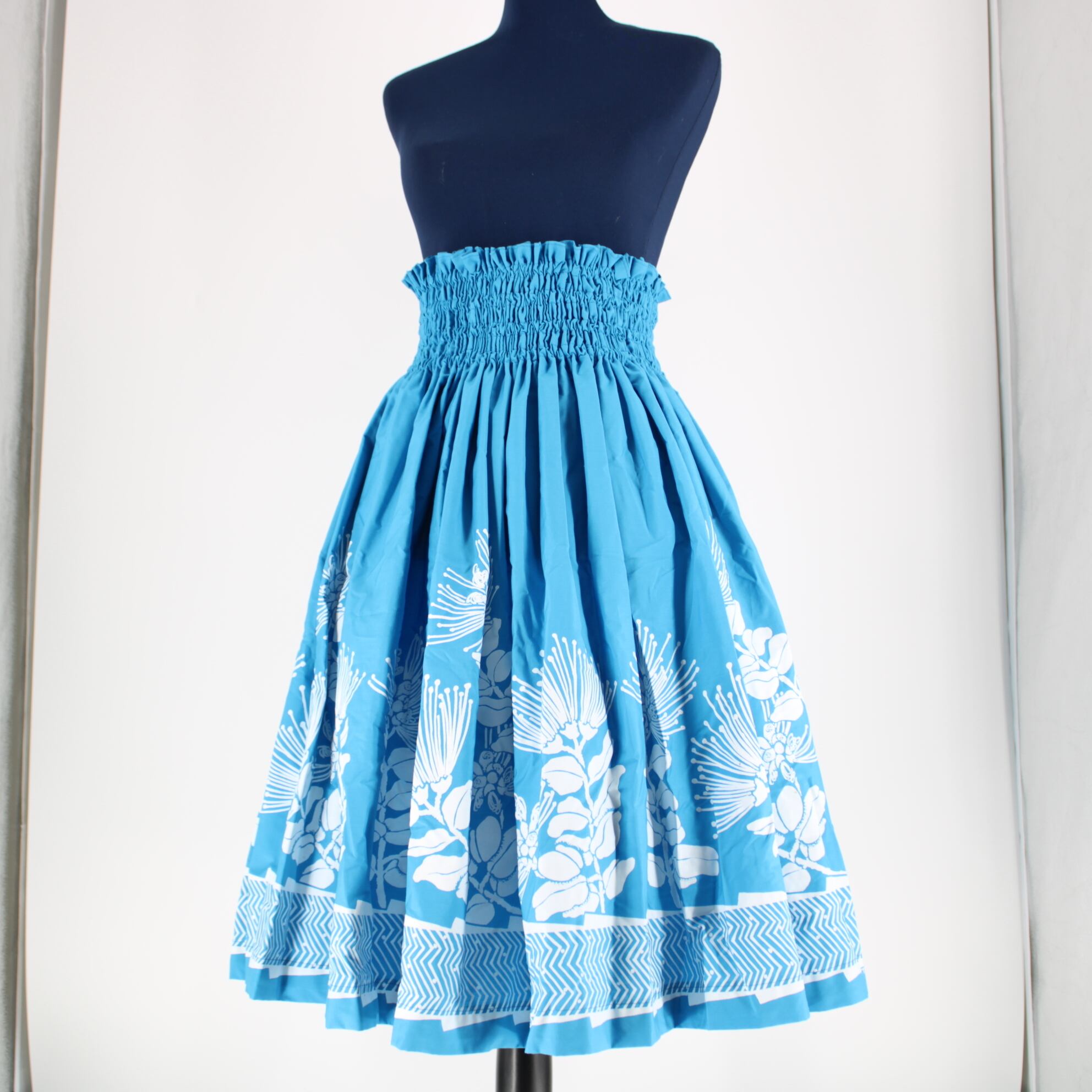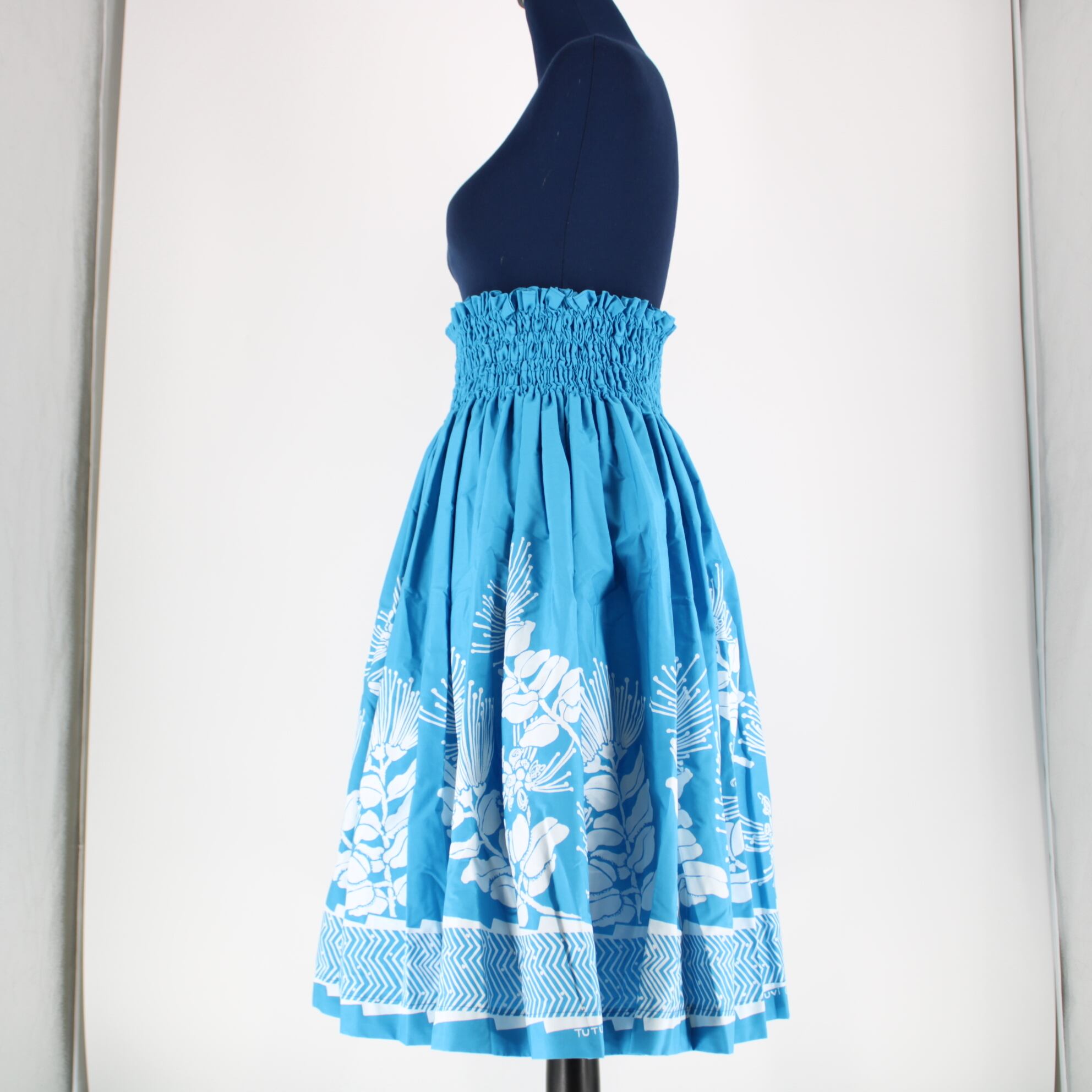 【最高級 ハワイ製 フラダンス衣装】スカイブルー TUTUVI TORCH GINGER パウスカート 水色 白 花柄 レフアタパ柄 青 ツツビ