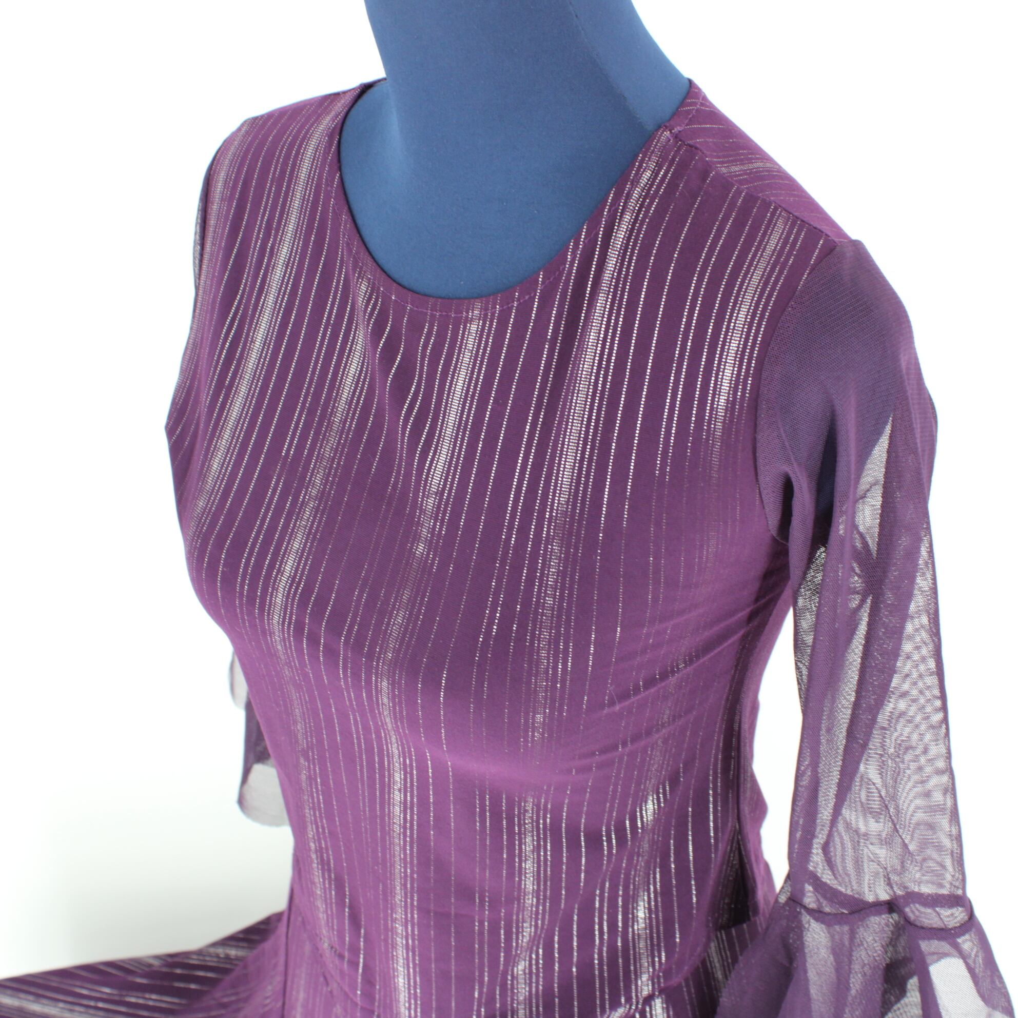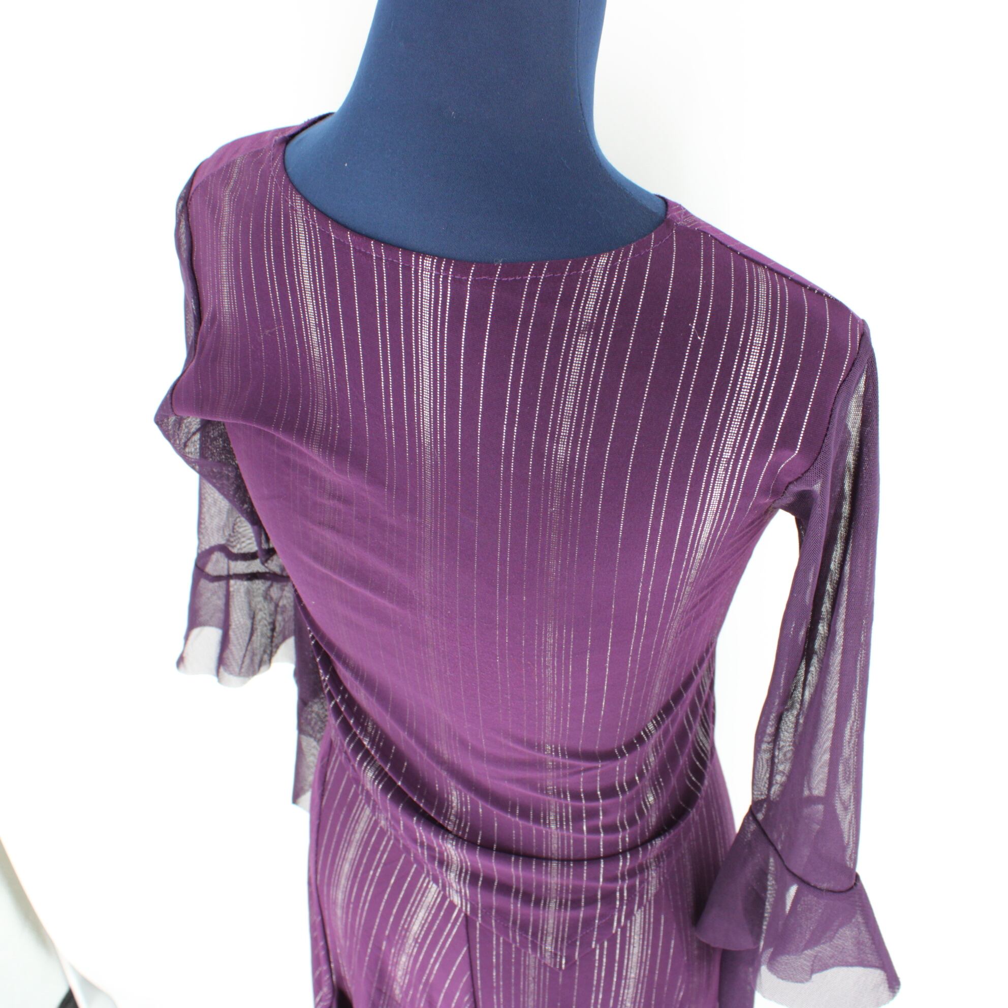 【美品 社交ダンス衣装】上下セット トップス スカート 紫 パープル ラベンダー かわいい 可愛い 上品 シック 清楚 透け感