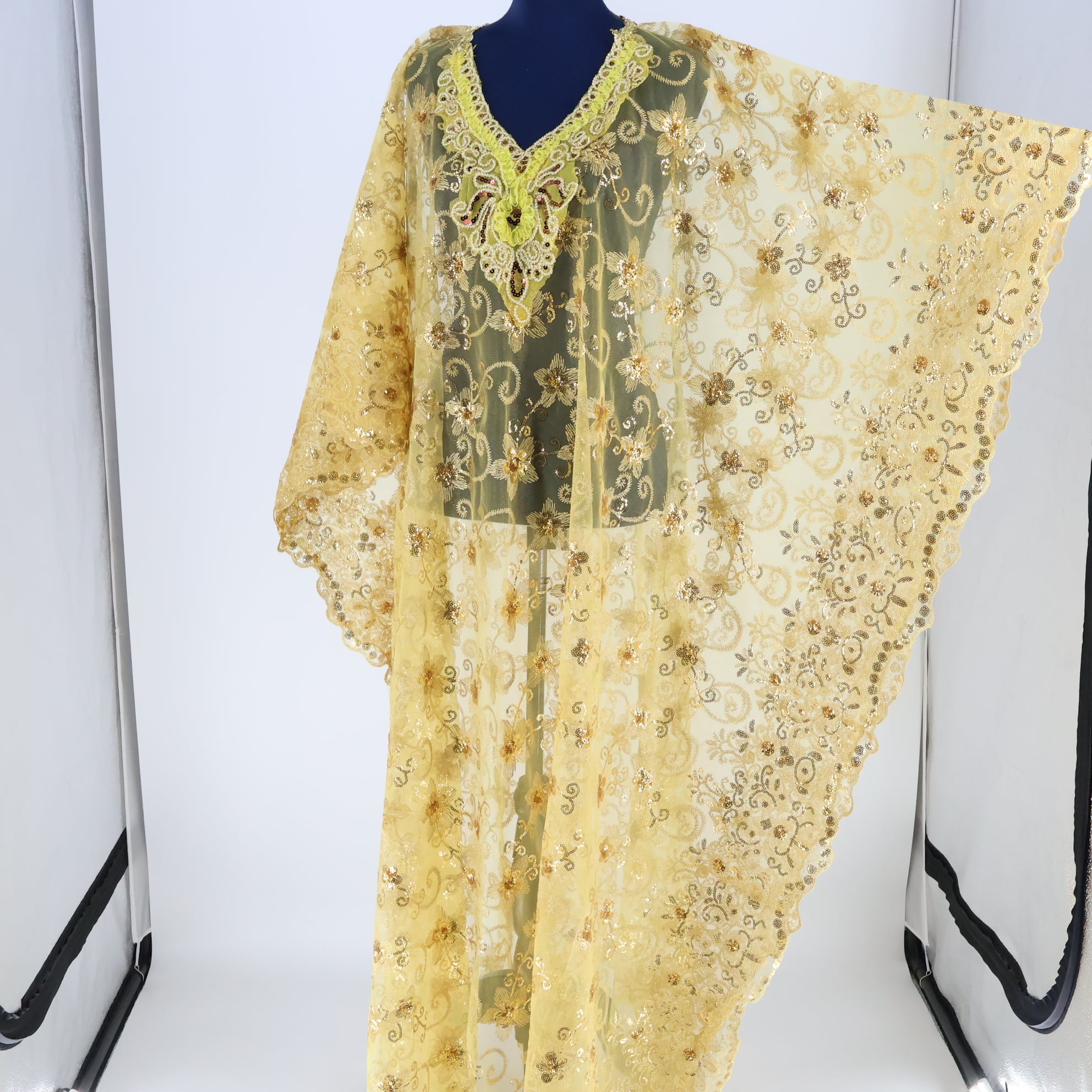 【ベリーダンス用衣装】ゴールド ハリージドレス ラメ ガラベーヤ チュニック 花柄 レース生地 透け感 煌びやか スパンコール