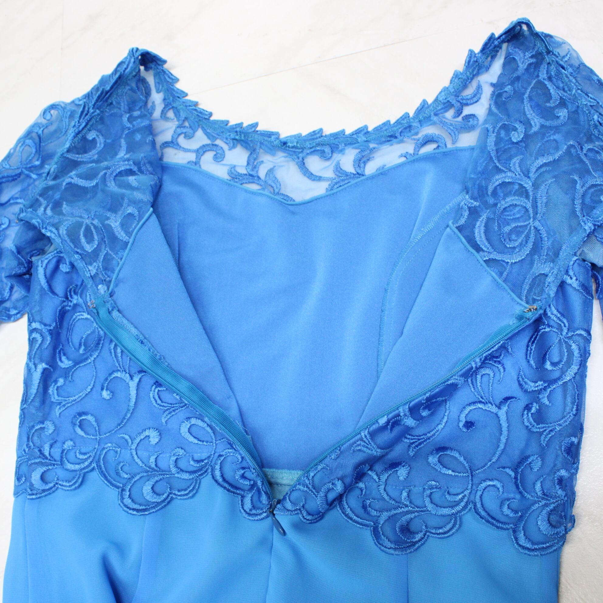 【美品 日本製社交ダンス衣装】ドレス ワンピース パニエ ペチコート SORELI ソレリ Mサイズ 青 ブルー レース 上品 清楚