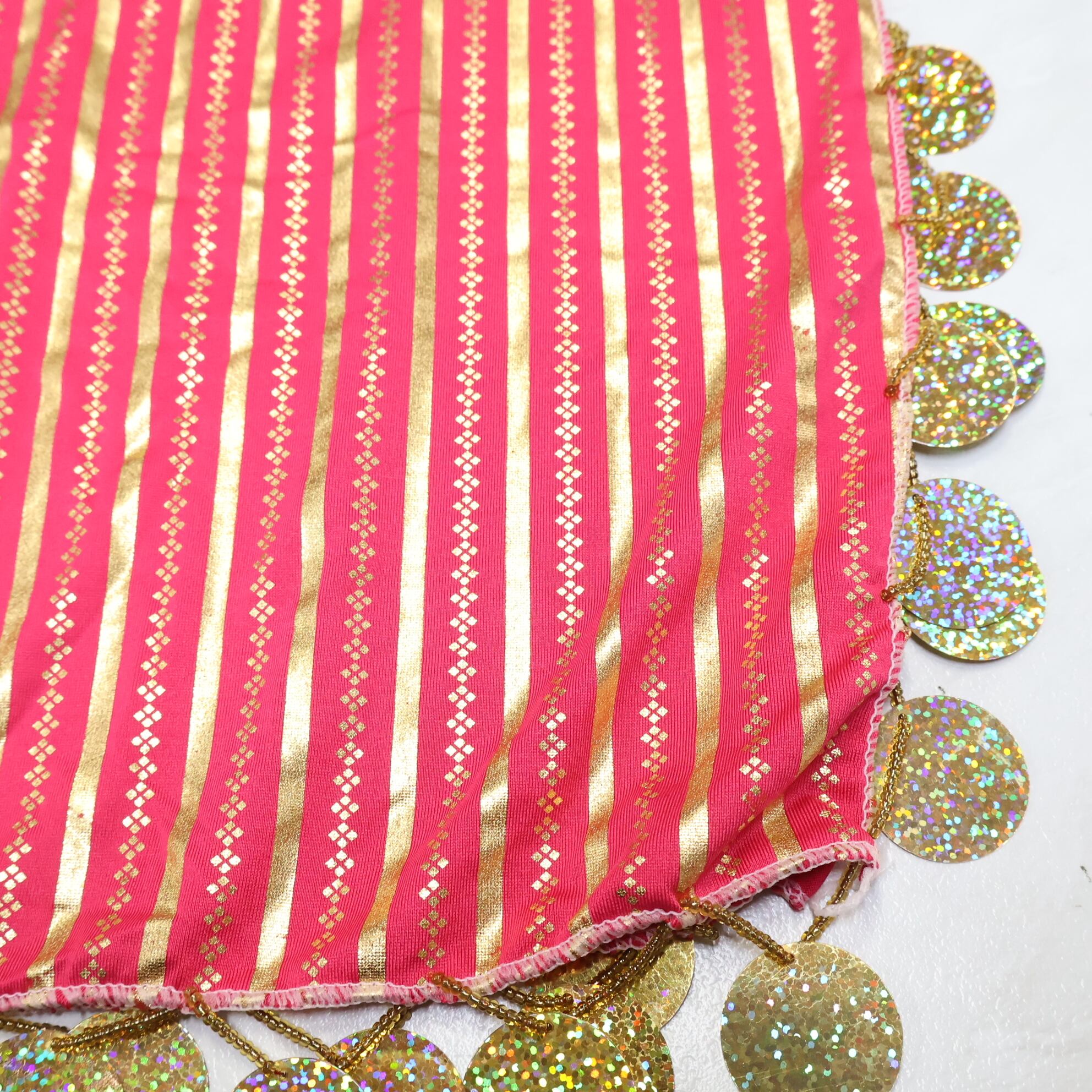 【ベリーダンス用衣装】鮮やかなピンク サイーディドレス ガラベーヤ ワンピース ドレス ゴールド ストライプ柄 スパンコール