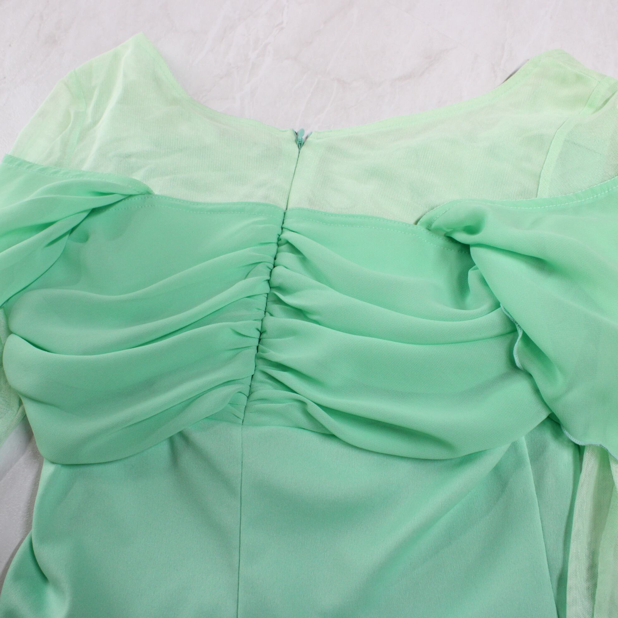 【美品 日本製社交ダンス衣装】上下セット トップス スカート PAPILLON パピヨン Mサイズ 黄緑 ライトグリーン ミントグリーン