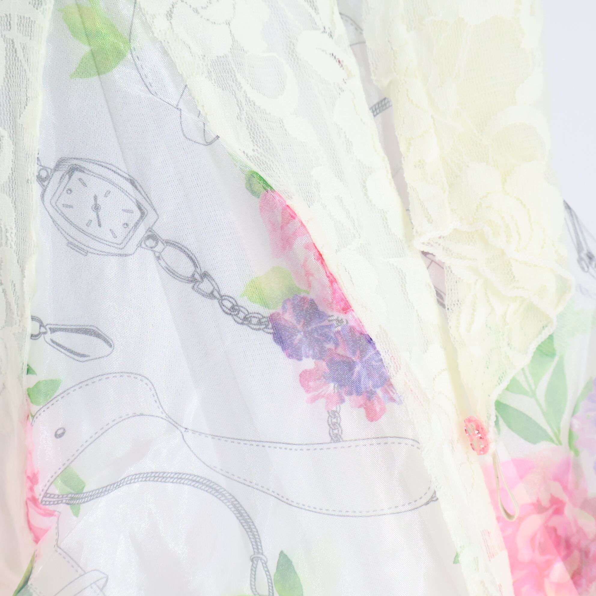 【美品 社交ダンス衣装】ホワイト leirena レイリーナ ワンピース ドレス 花柄 白 オフホワイト ピンク レース フリル