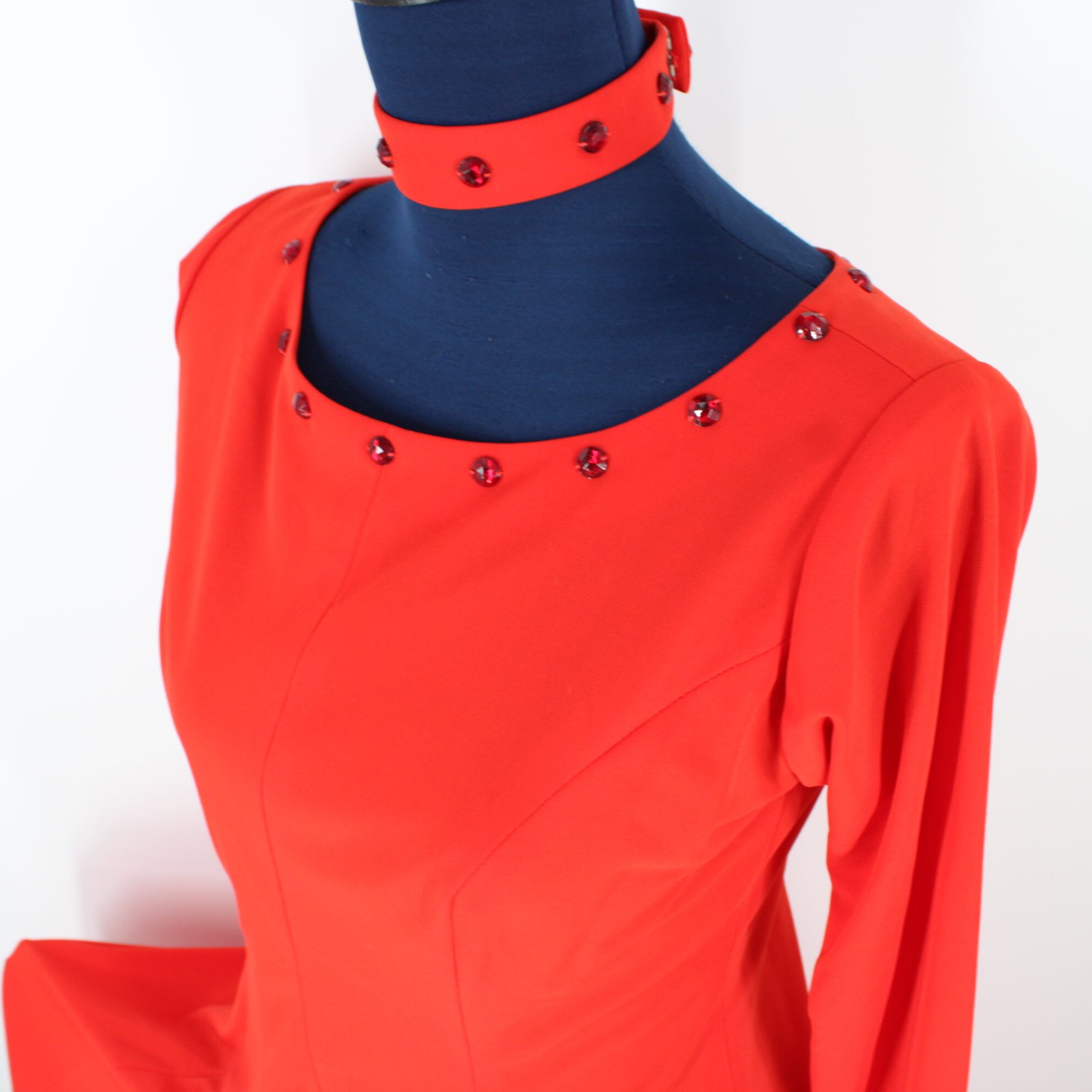 【美品 社交ダンス衣装】ワンピース ドレス チョーカー 赤 レッド シンプル 目立つ 派手 エレガント クラシカル シック 上品