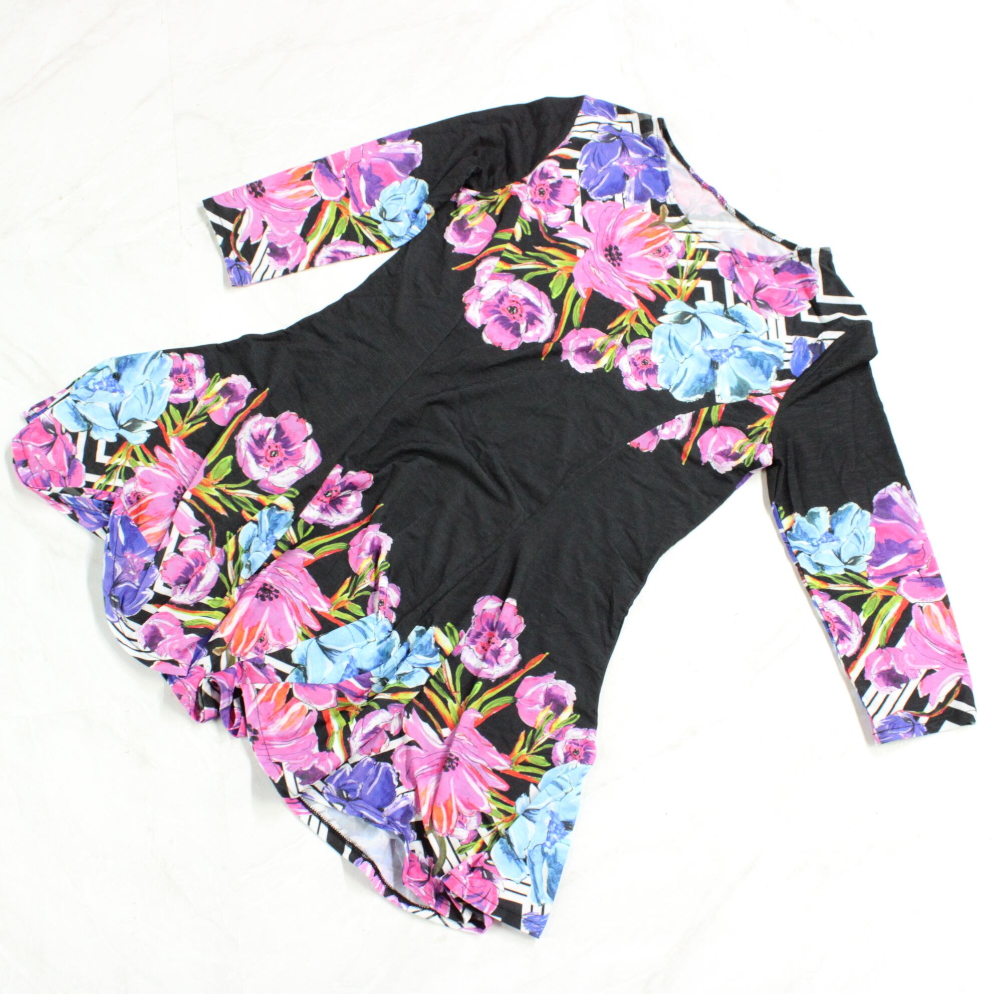 【美品 社交ダンス衣装】トップス 黒 ブラック ピンク 紫 パープル 水色 ライトブルー 白 ホワイト 黄緑 ライトグリーン 花柄