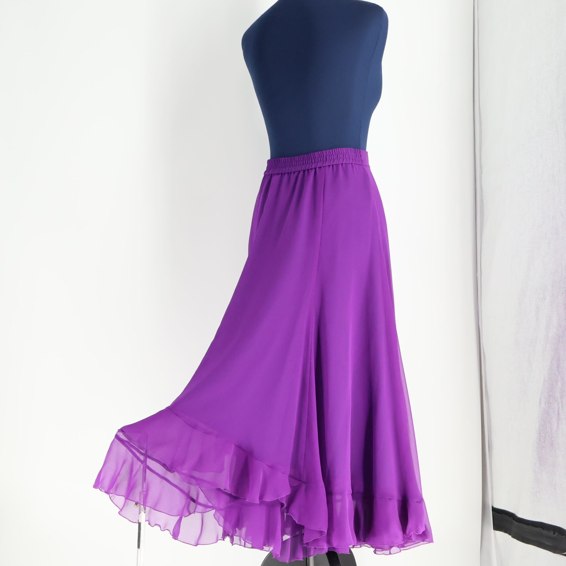 #社交ダンス #社交ダンス衣装 #チャコット #パープルスカート #フリルデザイン #レース装飾 #軽い素材 #透け感 #レッスンウェア #練習用スカート #日本製 #ダンス衣装 #ステージ衣装 #女性用衣装 #無地スカート #エレガントデザイン #ダンスコスチューム #ダンスファッション #高品質 #中古 #古着 #ENUTSU