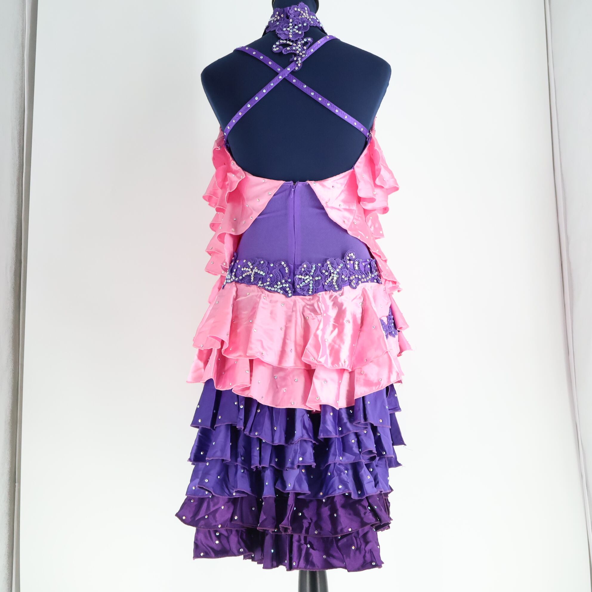 #ダンス衣装 #ラテンドレス #社交ダンス #ステージ衣装 #フリルドレス #ビジュー衣装 #アームカバー付き #光沢生地 #軽量ドレス #パープルドレス #ピンクドレス #ダンスコスチューム #競技ダンス #エレガント衣装 #デザインドレス #ダンス用ワンピース #中古ドレス #古着ファッション #ENUTSU #美品