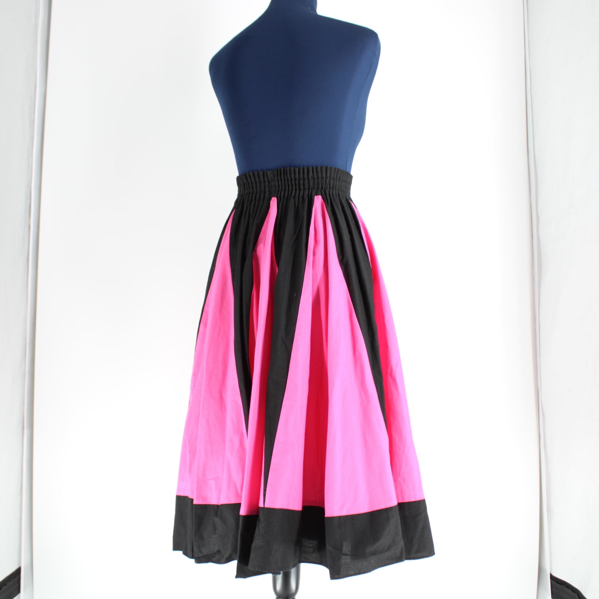 【フォークダンス衣装】ピンク スカート ブラック バイカラー 鮮やか 黒 ダンス用 ふんわり ウエストゴム かわいい フレア