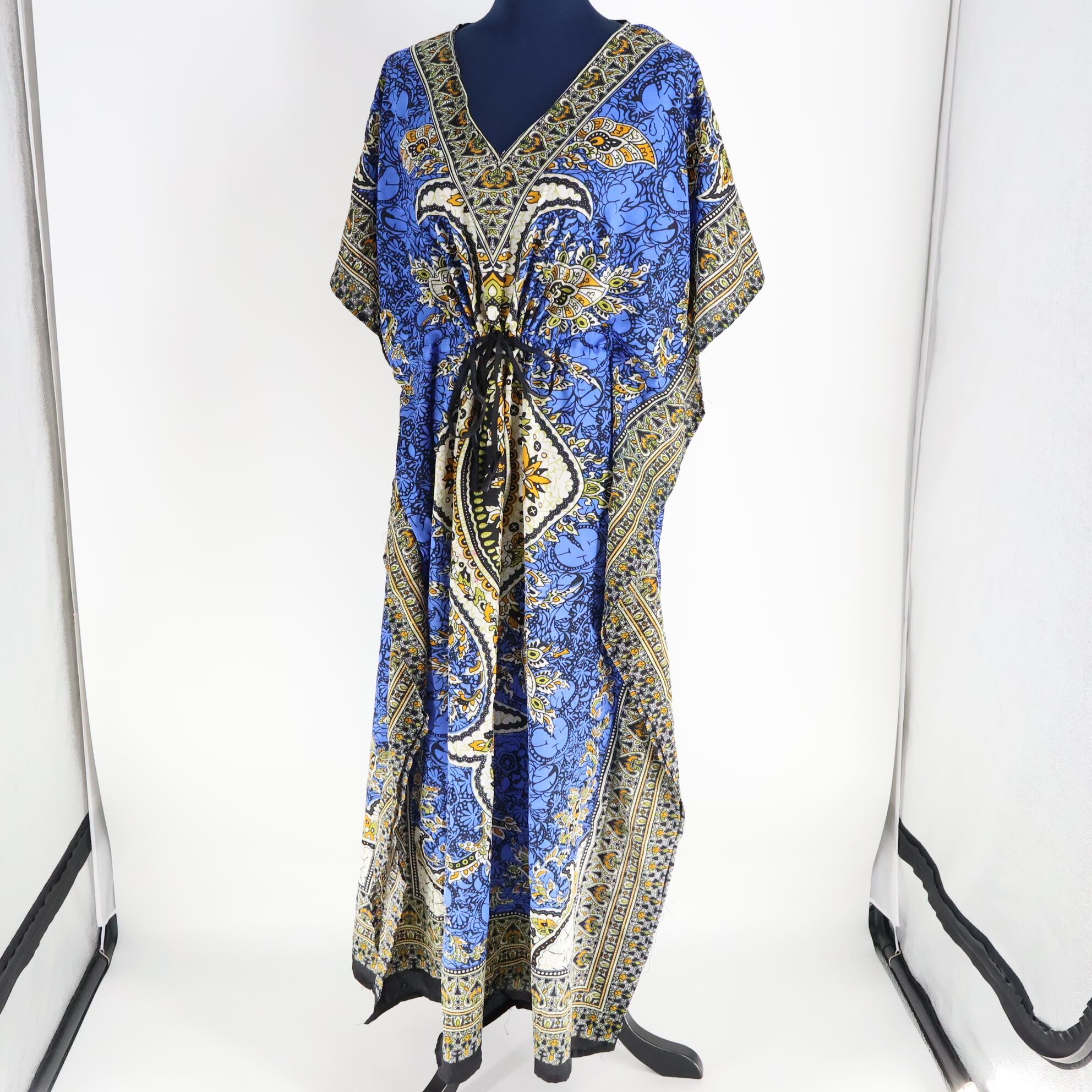 【ベリーダンス用衣装】ブルー Garam garam ガラベーヤ ワンピース ドレス チュニック 絞り 異国情緒 柄 華やか レース生地