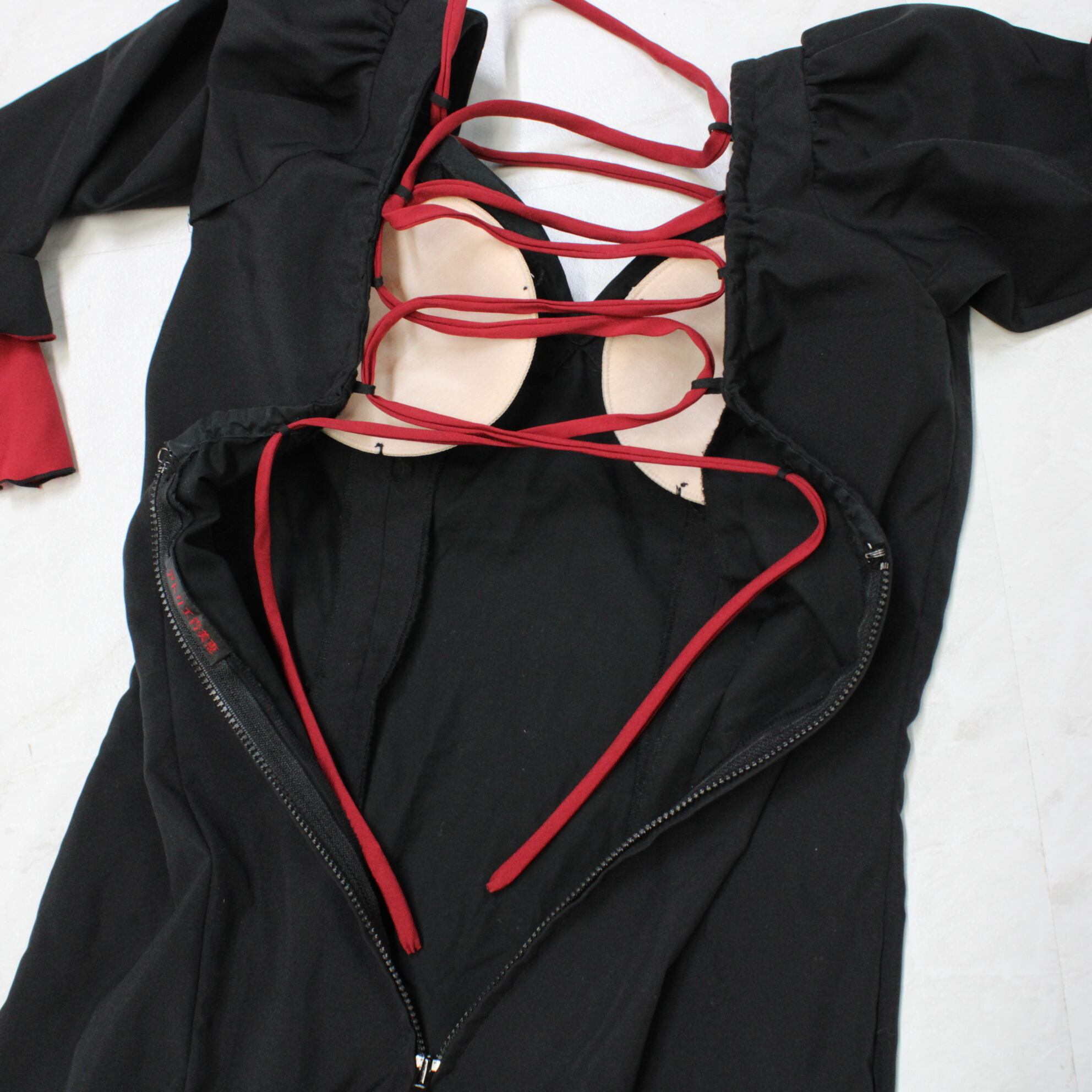【フラメンコ衣装】ブラック アトリエ貴美恵 ワンピース ドレス ボランテ レッド 赤 黒 無地 フリル 袖口 ラッパ袖 リボン ダンス用 編み上げ 無地 かわいい レディース 発表会 パーティ