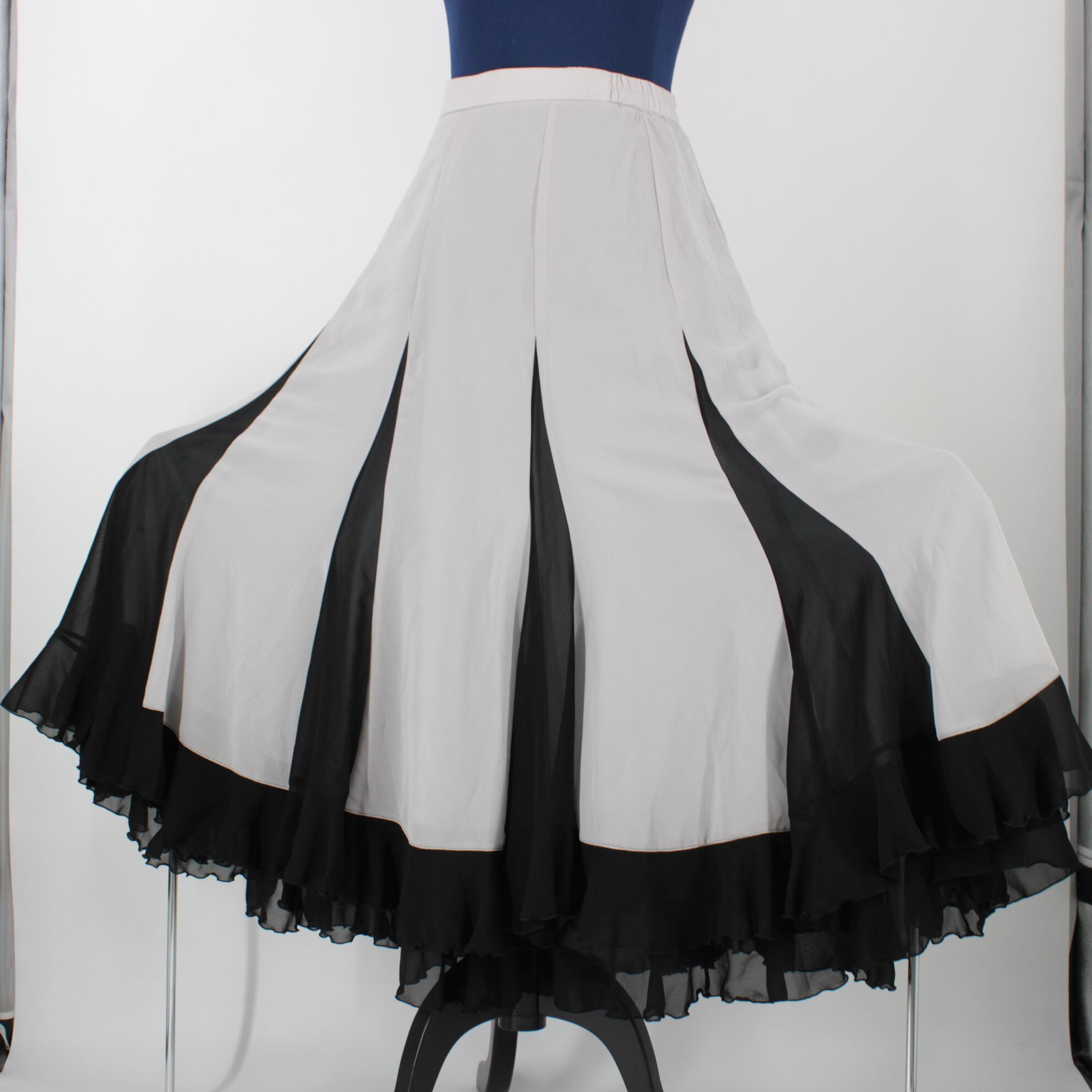 #社交ダンス #ダンススカート #PAPILLON #バイカラーデザイン #ライトグレー #ブラック #エレガント #ステージ衣装 #クラシックスタイル #動きやすい #ダンスコスチューム #ステージ衣装 #古着 #中古 #ENUTSU
