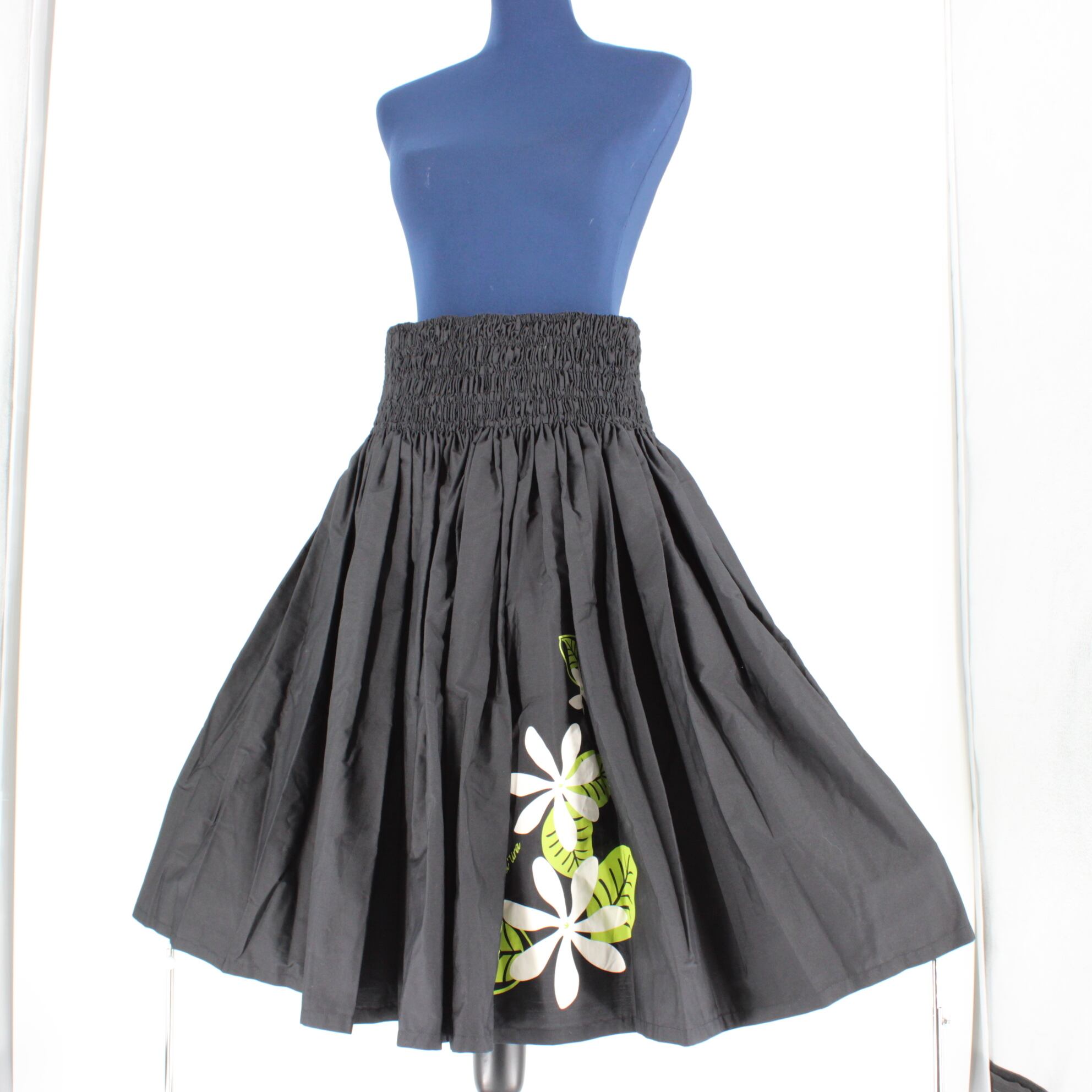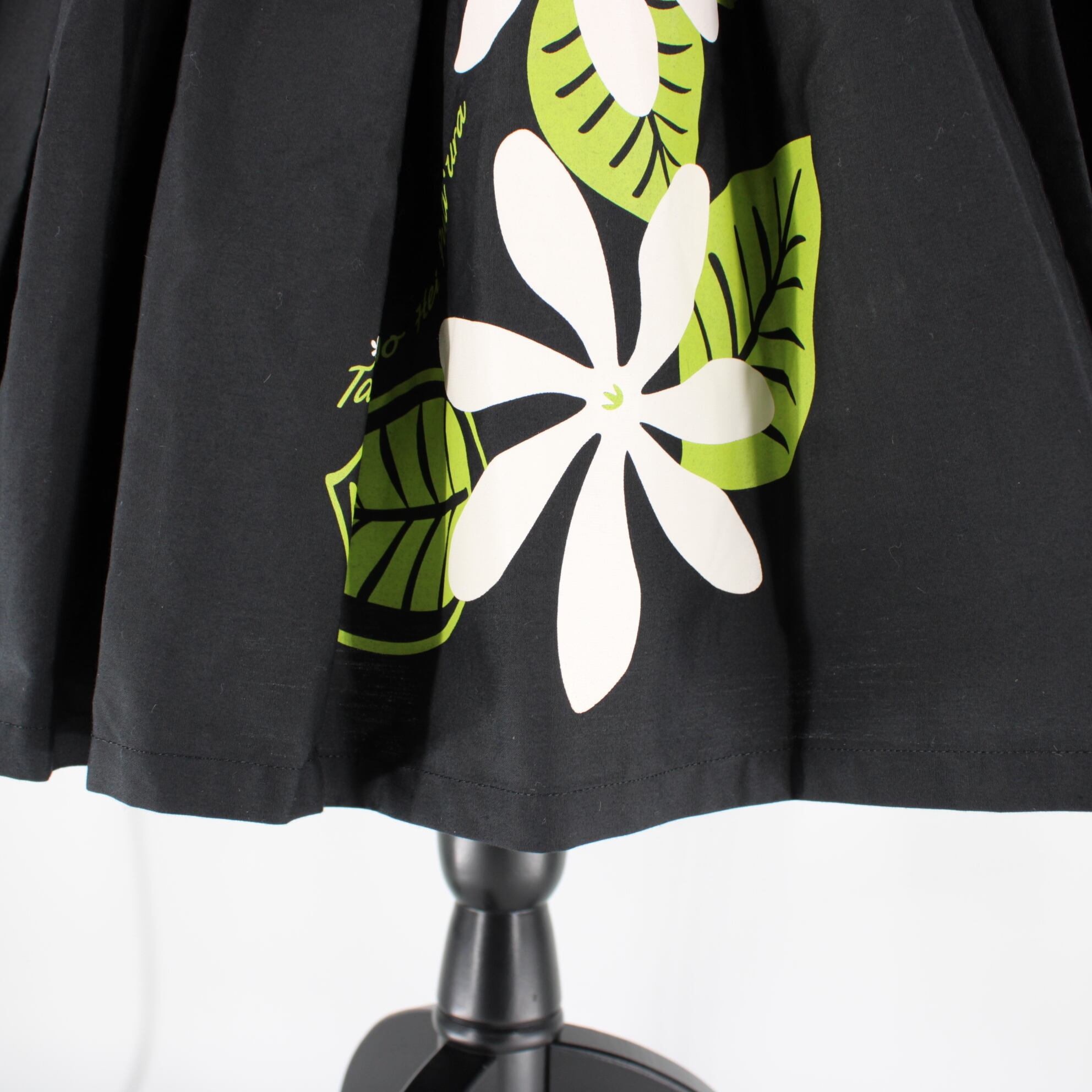 【日本製 フラダンス衣装】ブラック MENEHUNE PLANTETION メネフネプランテーション パウスカート ティアレ柄 黒 白 可愛い 花