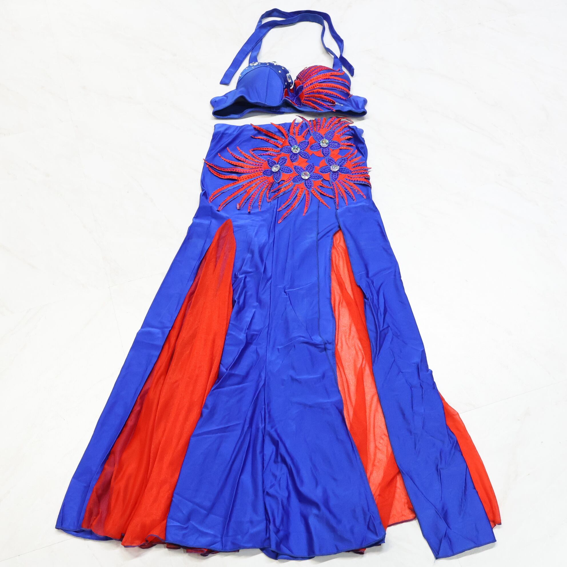 #ダンス衣装 #ダンスコスチューム #ステージ衣装 #古着 #中古 #ENUTSU #ベリーダンス衣装 #オリエンタル衣装 #ラインストーン #ブルー衣装 #レッド衣装 #青赤コーデ #花柄デザイン #フリルスカート #サテン生地 #レース素材 #ストレッチ素材 #ブラトップ #スカートセット #鮮やか衣装 #ステージ映え