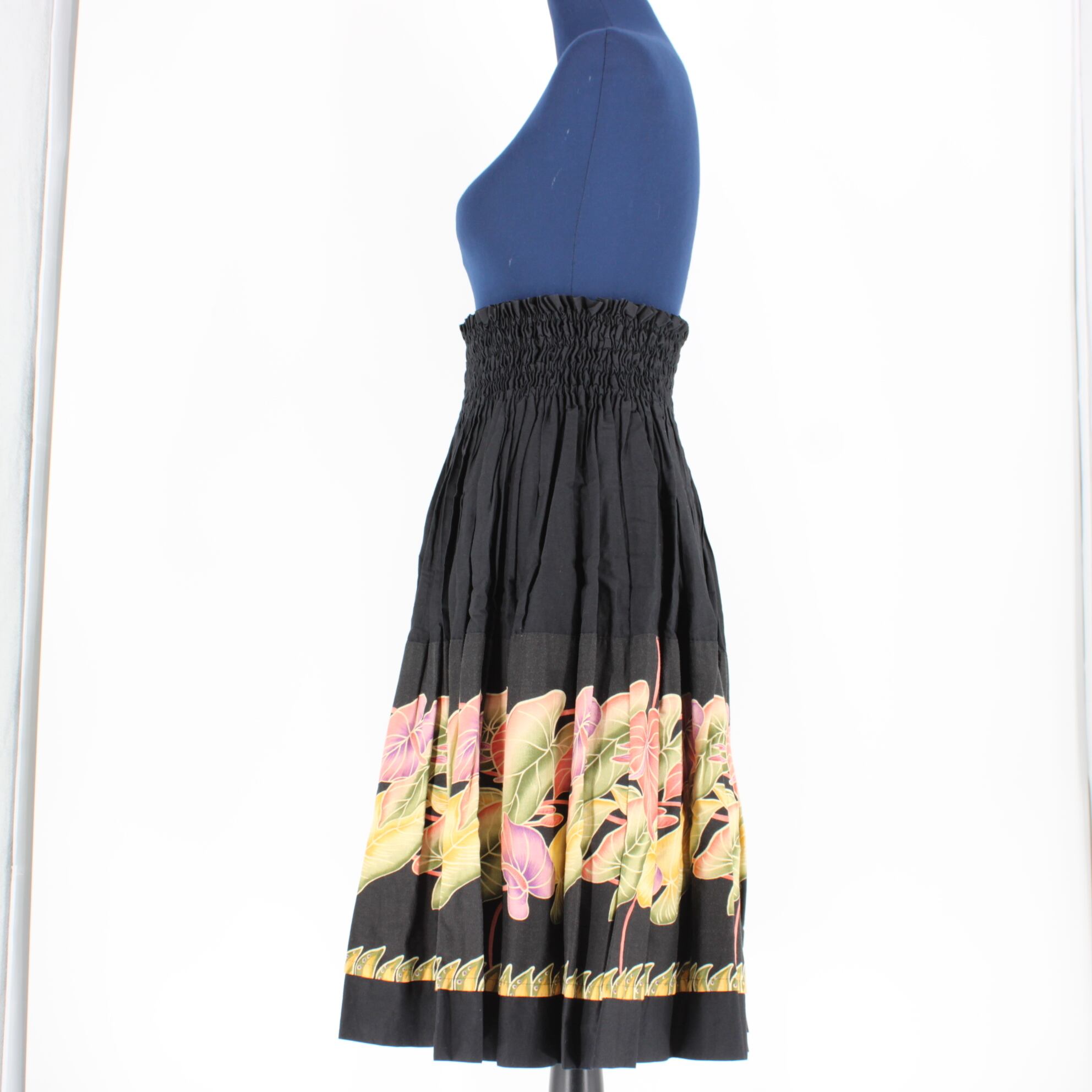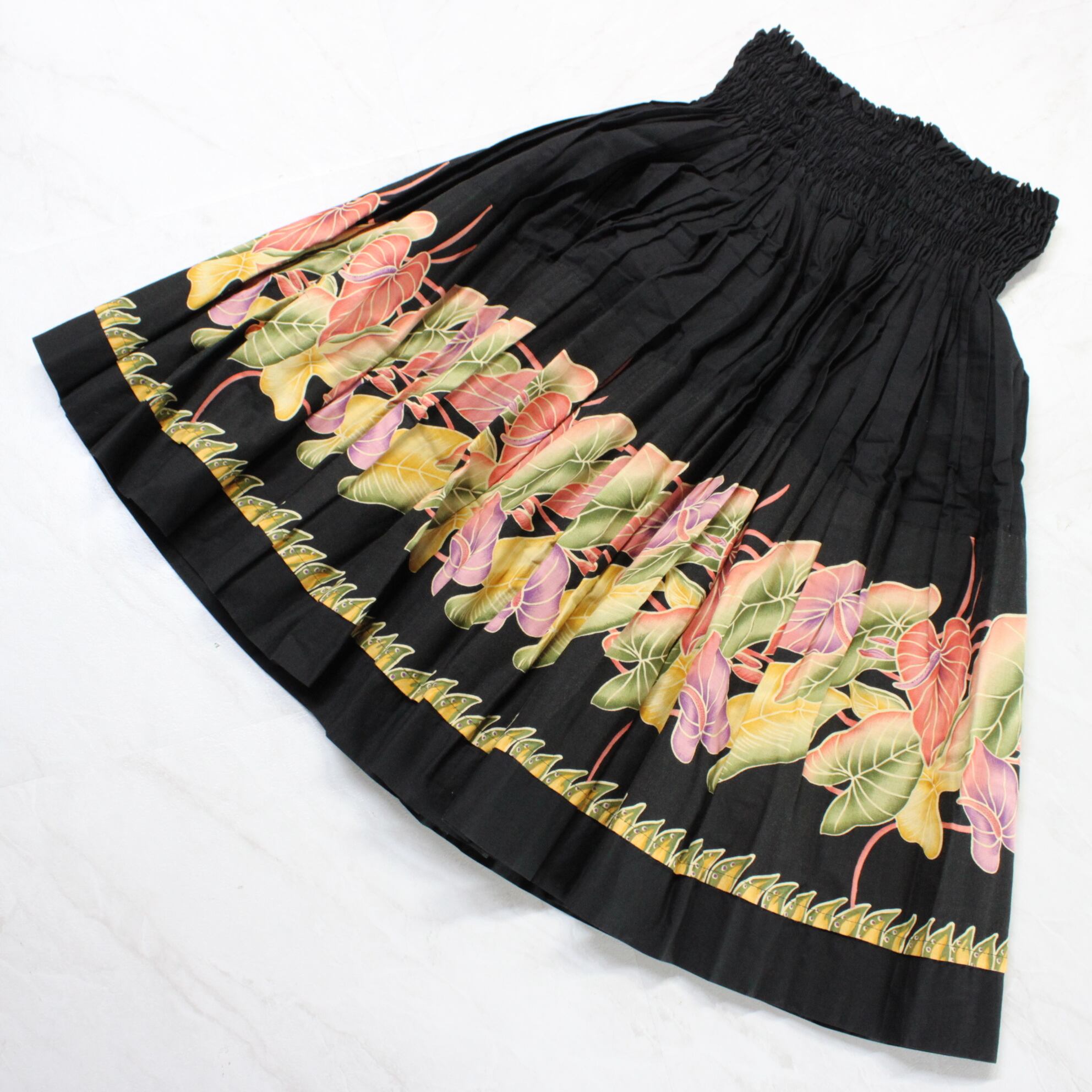 【フラダンス衣装】ブラック パウスカート カラフル 黒 フレア ハワイアンプリント 赤 黄 緑 紫 グラデーション アロハ 可愛い