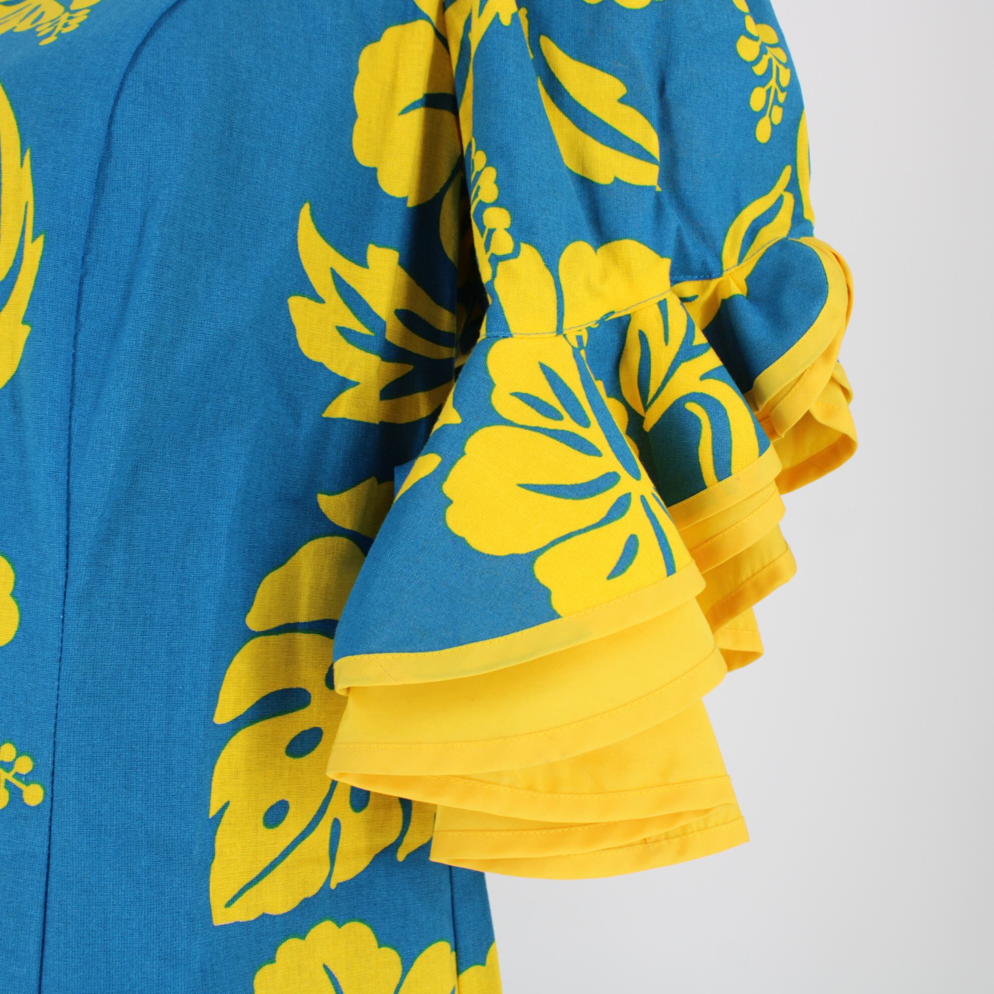 #フラダンス #フラダンス衣装 #ハワイアンファッション #ハイビスカス柄 #ブルーワンピース #フリルドレス #ハワイアンプリント #アロハスタイル #鮮やかカラー #パフォーマンスウェア #トロピカルファッション #南国スタイル #イベント衣装 #ダンスウェア #ダンス衣装 #ダンスコスチューム #ステージ衣装 #古着 #中古 #ENUTSU