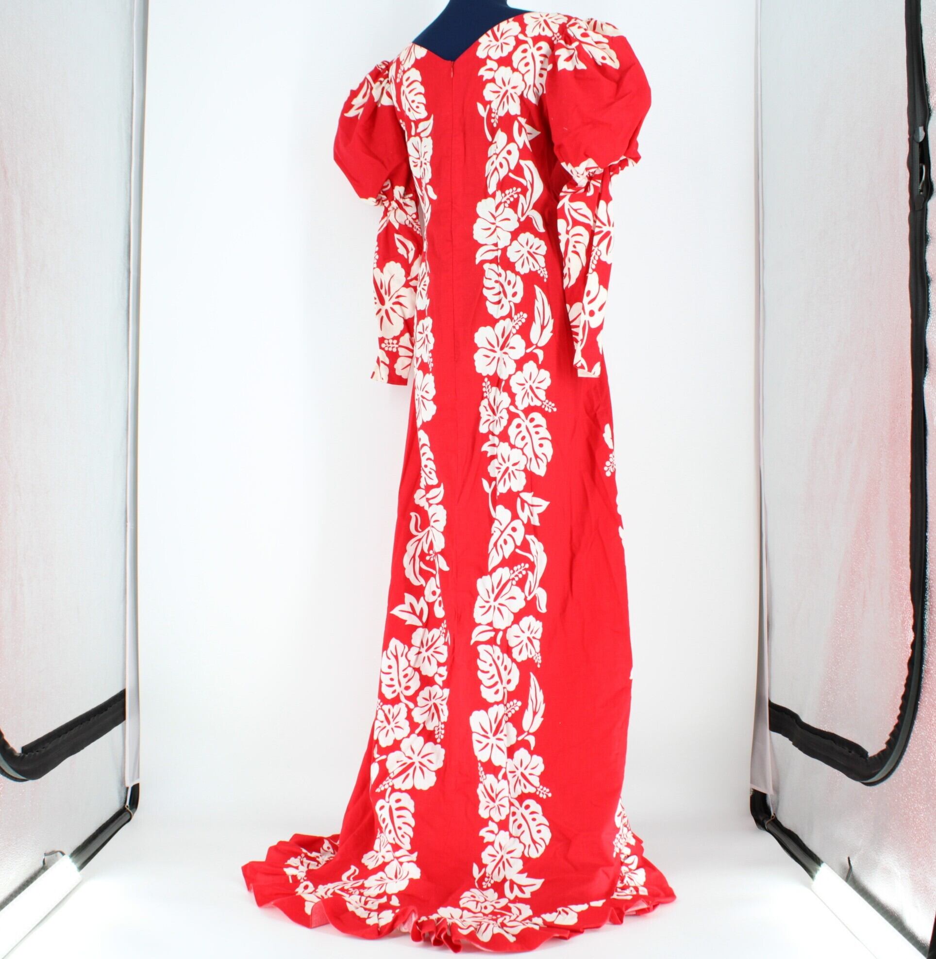 【フラダンス衣装】レッド ワンピース ドレス ハイビスカス柄 モンステラ柄 赤 ホワイト 白 鮮やか 華やか 長袖 ゴージャス 花