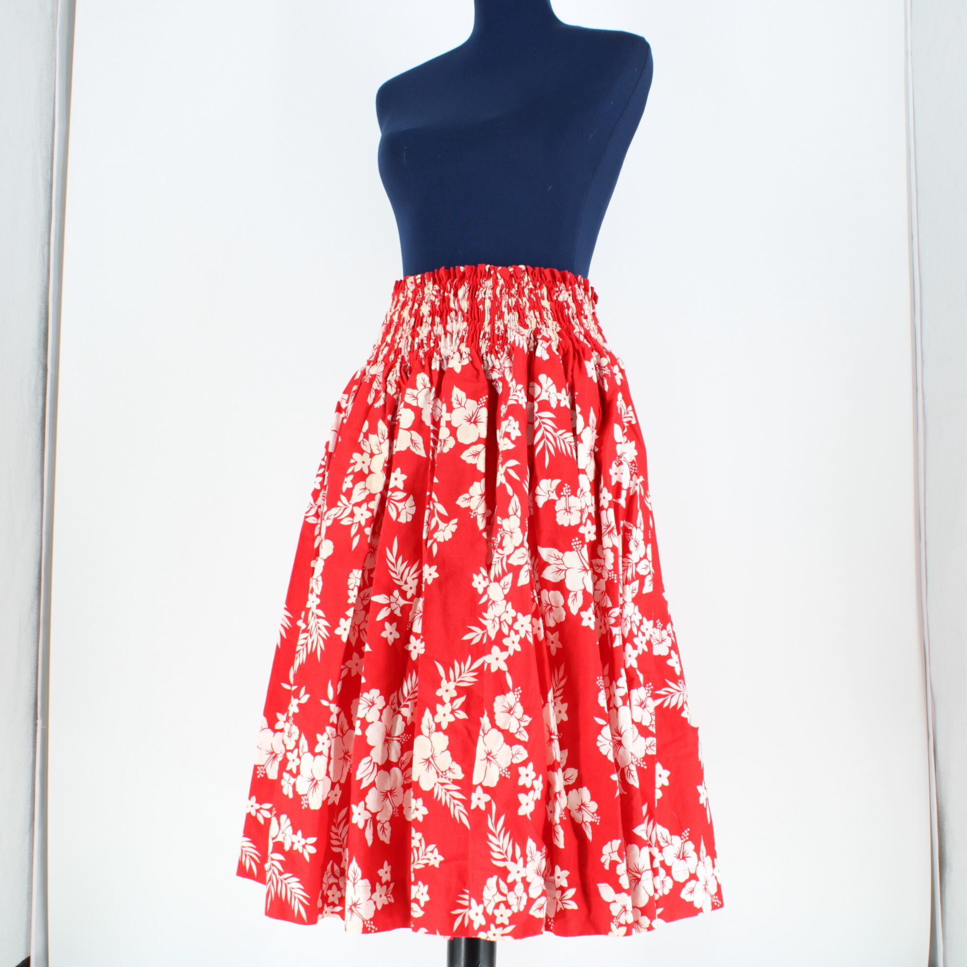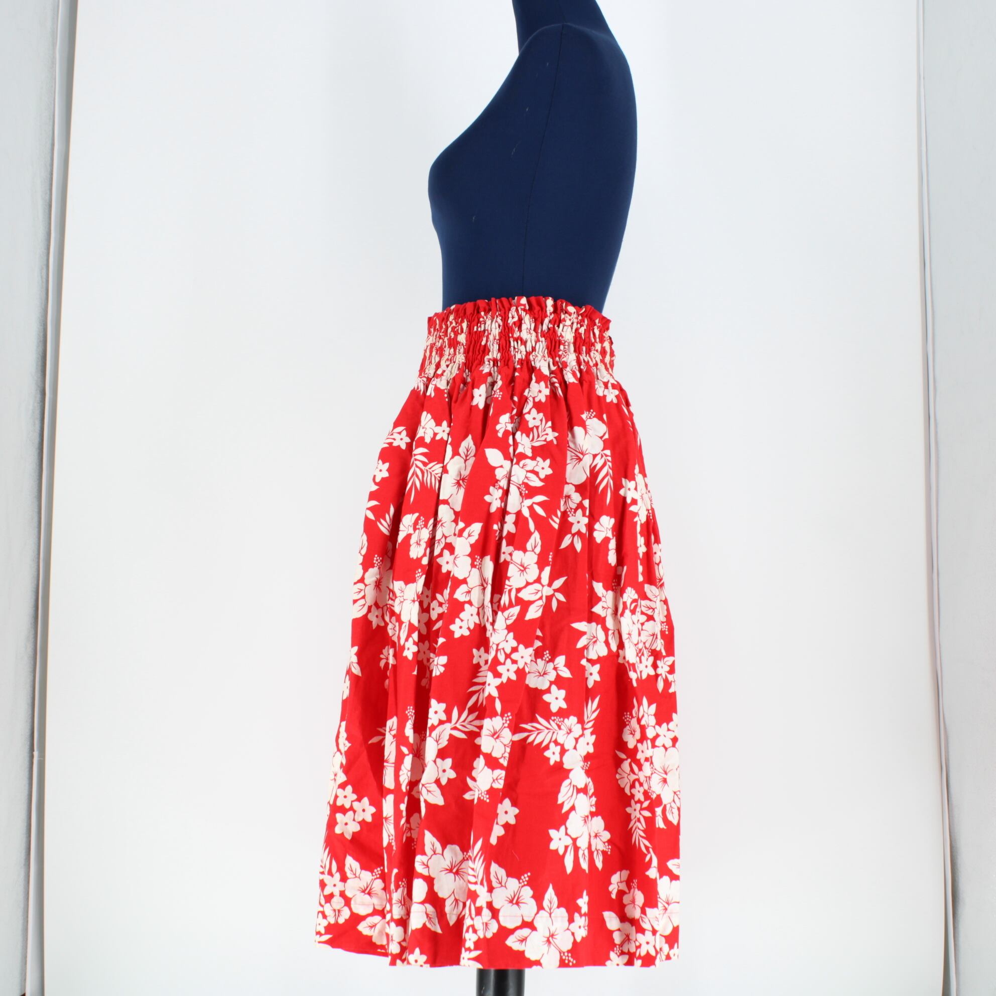【フラダンス衣装】レッド パウスカート ハイビスカス柄 赤 ホワイト 白 華やか 鮮やか フレア ハワイアン アロハ かわいい 花