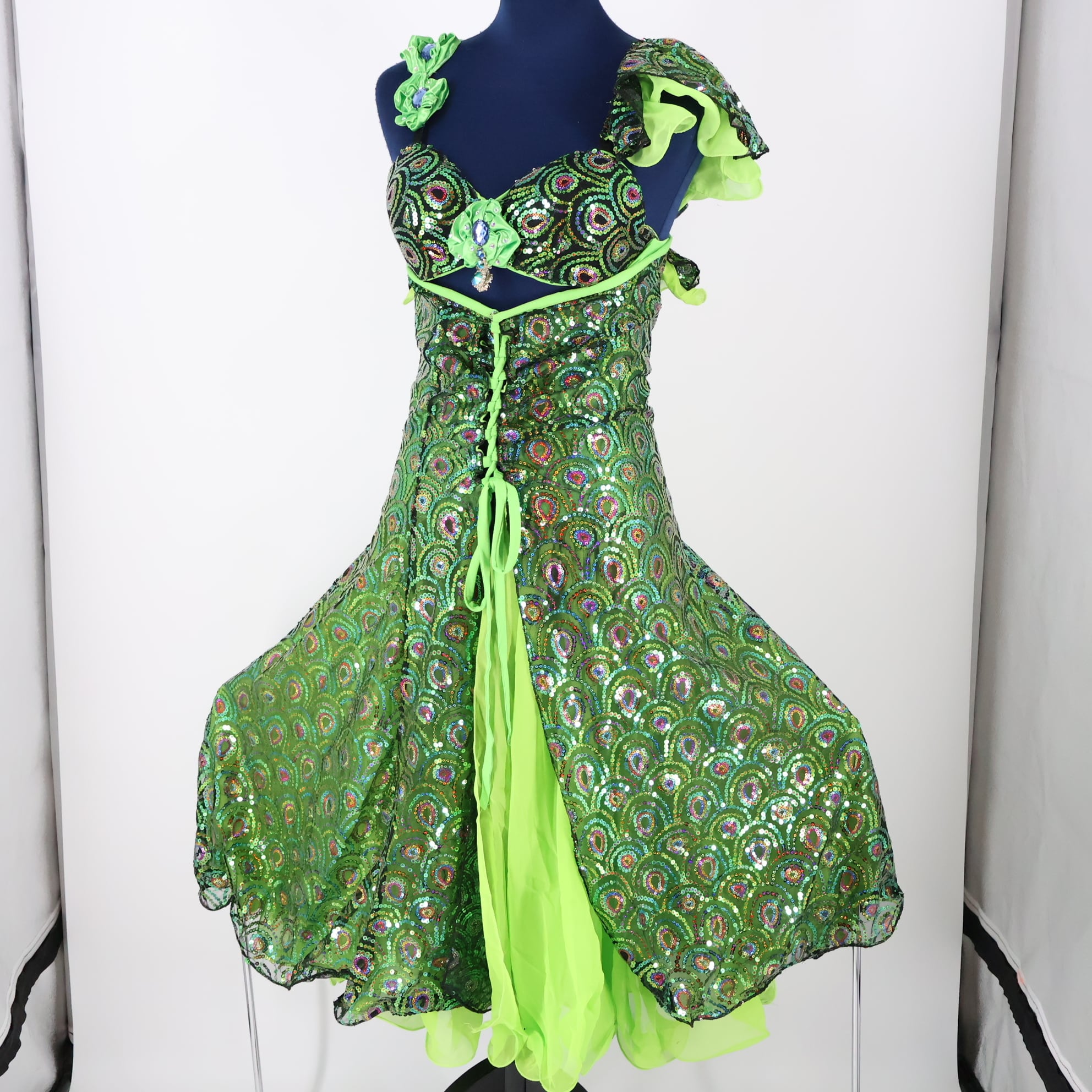 #ダンス衣装 #ダンスコスチューム #ステージ衣装 #古着 #中古 #ENUTSU #ベリーダンス衣装 #オリエンタル衣装 #グリーン衣装 #スパンコールラメ #レース素材 #フリルデザイン #孔雀柄 #カラフル衣装 #煌びやか衣装 #豪華デザイン #ブラトップセット #スカートセット #お洒落衣装 #ステージ映え #華やかコーデ #パフォーマンス衣装