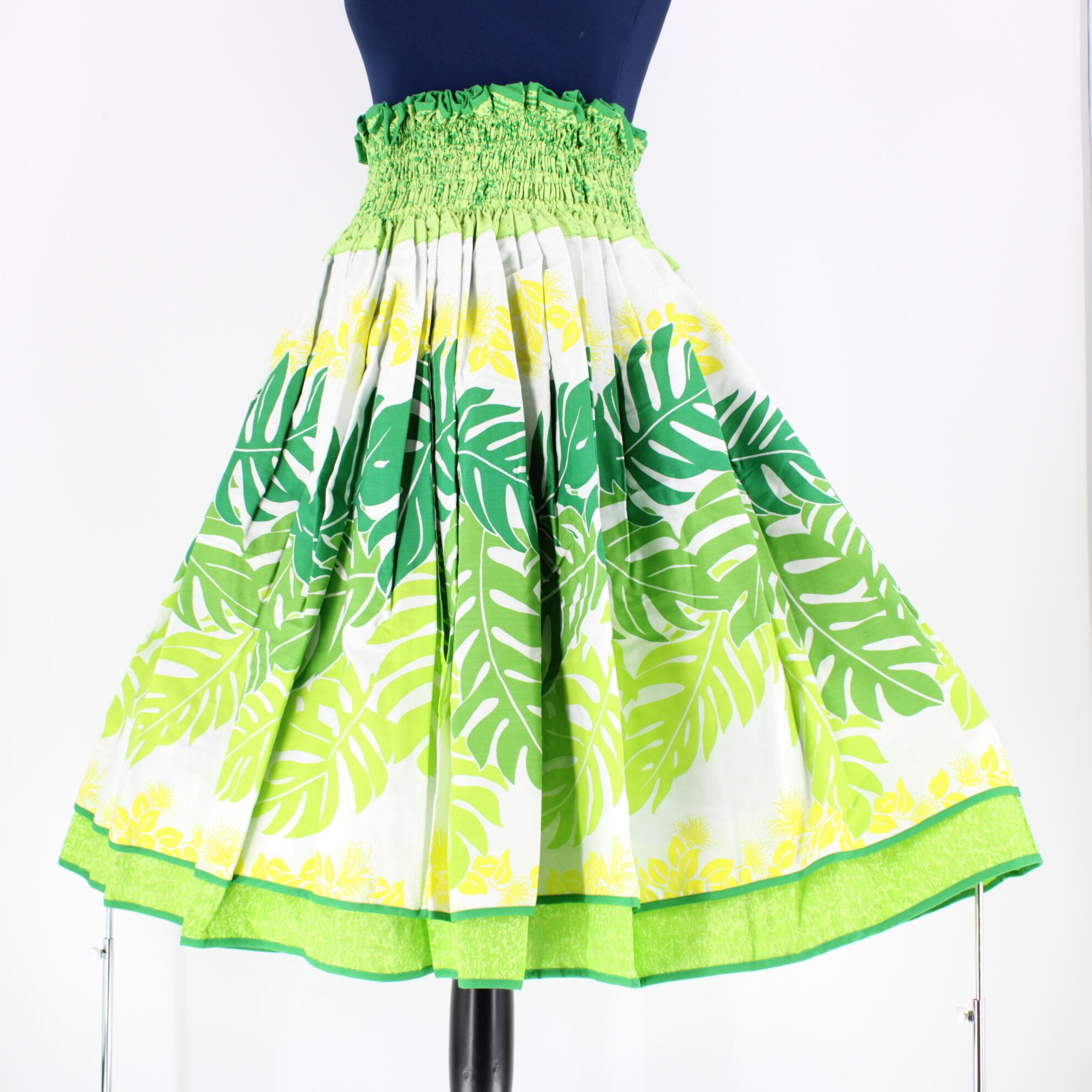 【日本製 フラダンス衣装】ホワイト CoCoEmily ココエミリー パウスカート グリーン モンステラ レフア 白 緑 爽やか 鮮やか