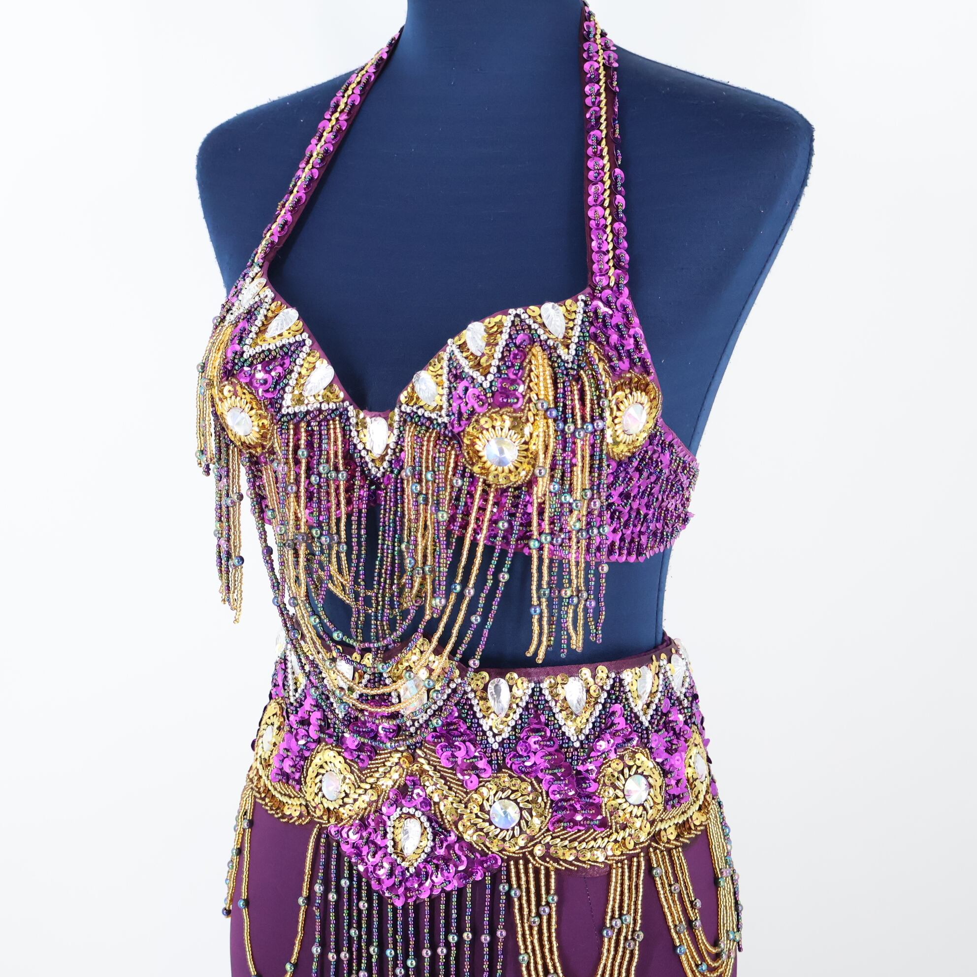 #ダンス衣装 #ダンスコスチューム #ステージ衣装 #古着 #中古 #ENUTSU #ベリーダンス衣装 #オリエンタル衣装 #パープル衣装 #スパンコールラメ #ビーズデザイン #豪華衣装 #ゴールドアクセント #ストレッチ素材 #ラインストーン #スリット入り #ブラトップセット #ベルト付き #スカートセット #煌びやか衣装 #ゴージャスデザイン #美しい衣装