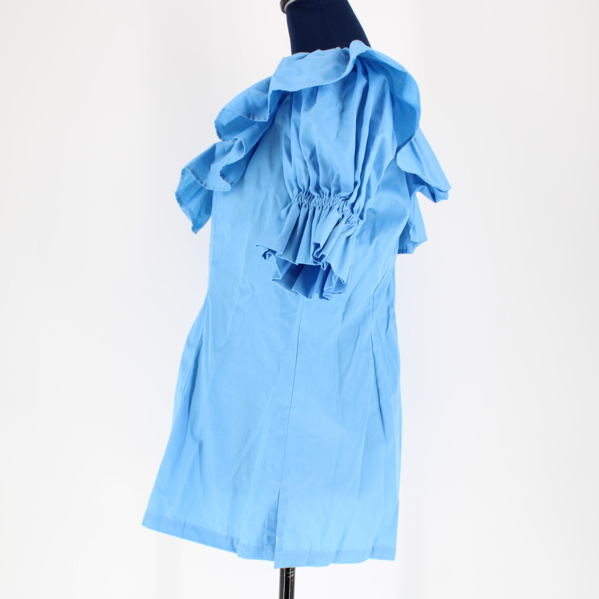 【フラダンス衣装】スカイブルー FANCY DRESS ファンシードレス トップス ブラウス 水色 シャツ 無地 シンプル フリル 絞り 青