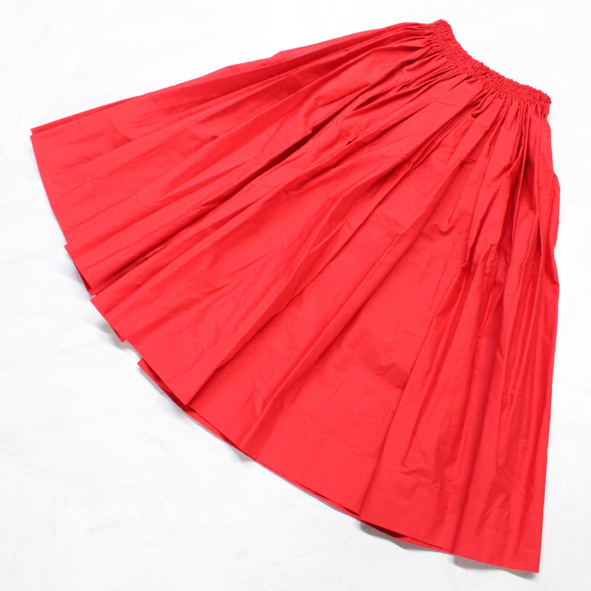 【フラダンス衣装】レッド パウスカート 無地 赤 シンプル ロング ハワイアン アロハ 鮮やか 明るい フレアスカート シングル