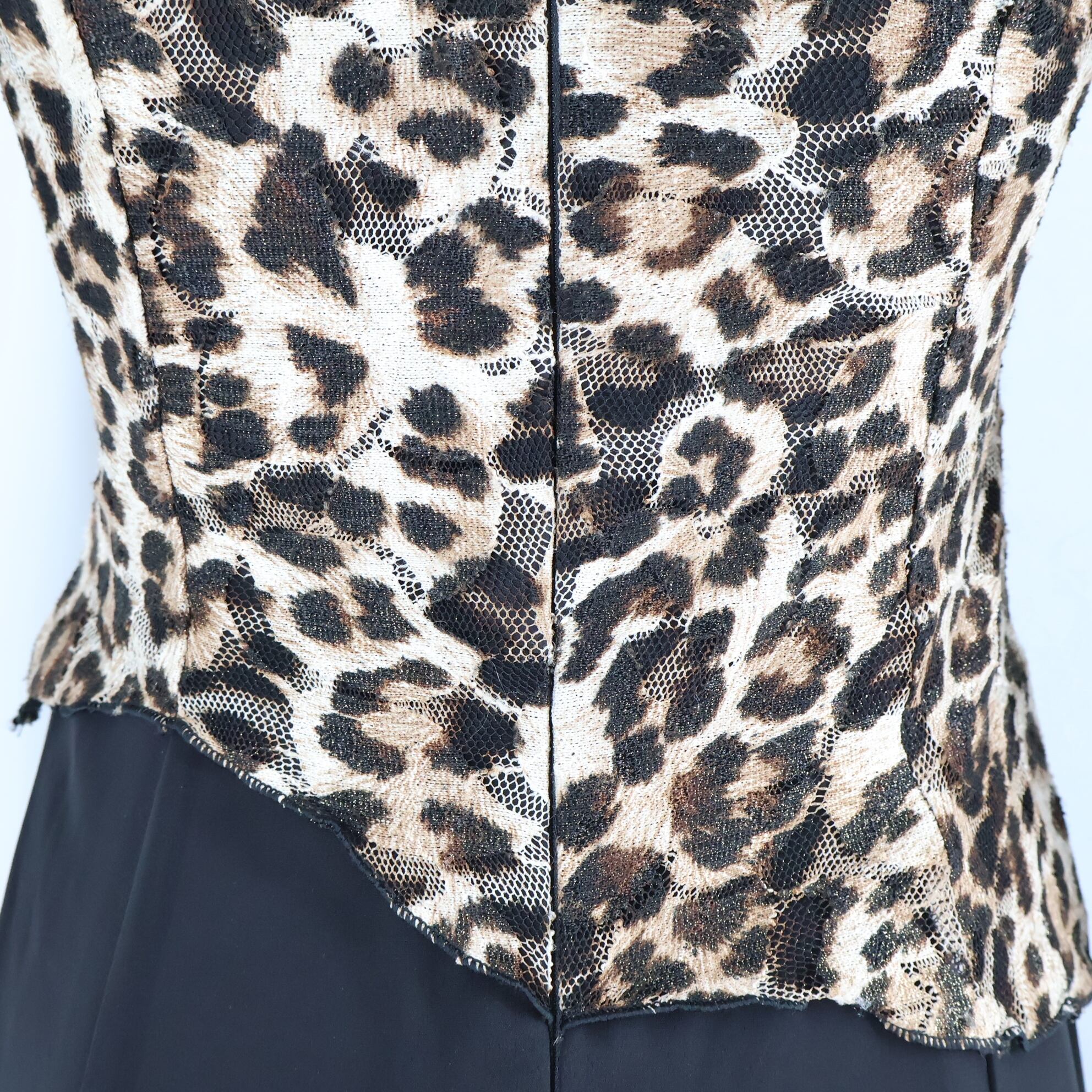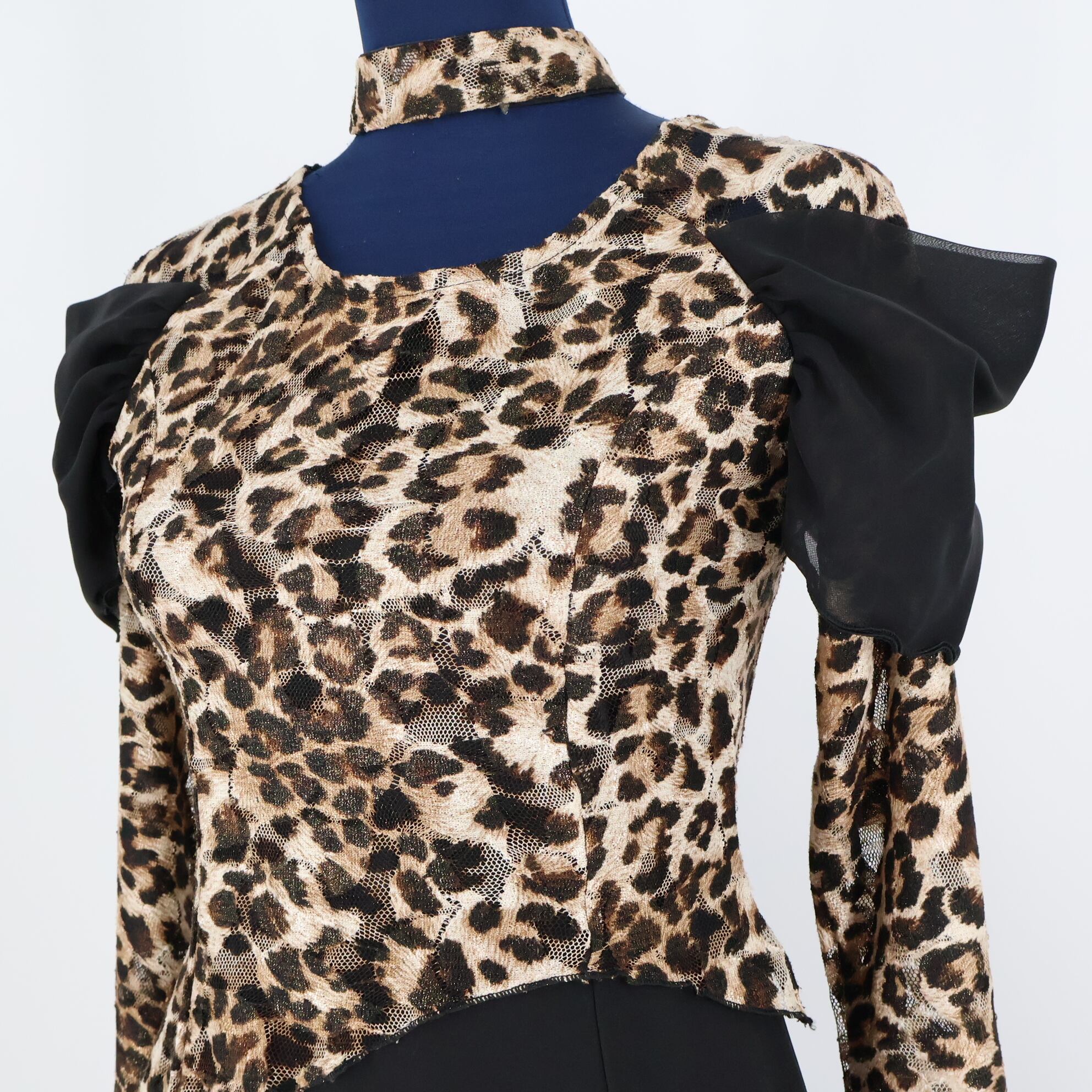 【社交ダンス衣装】ブラック leirena レイリーナ ワンピース ドレス ヒョウ柄 フリル レース 黒 アニマル 長袖 発表会 デモ