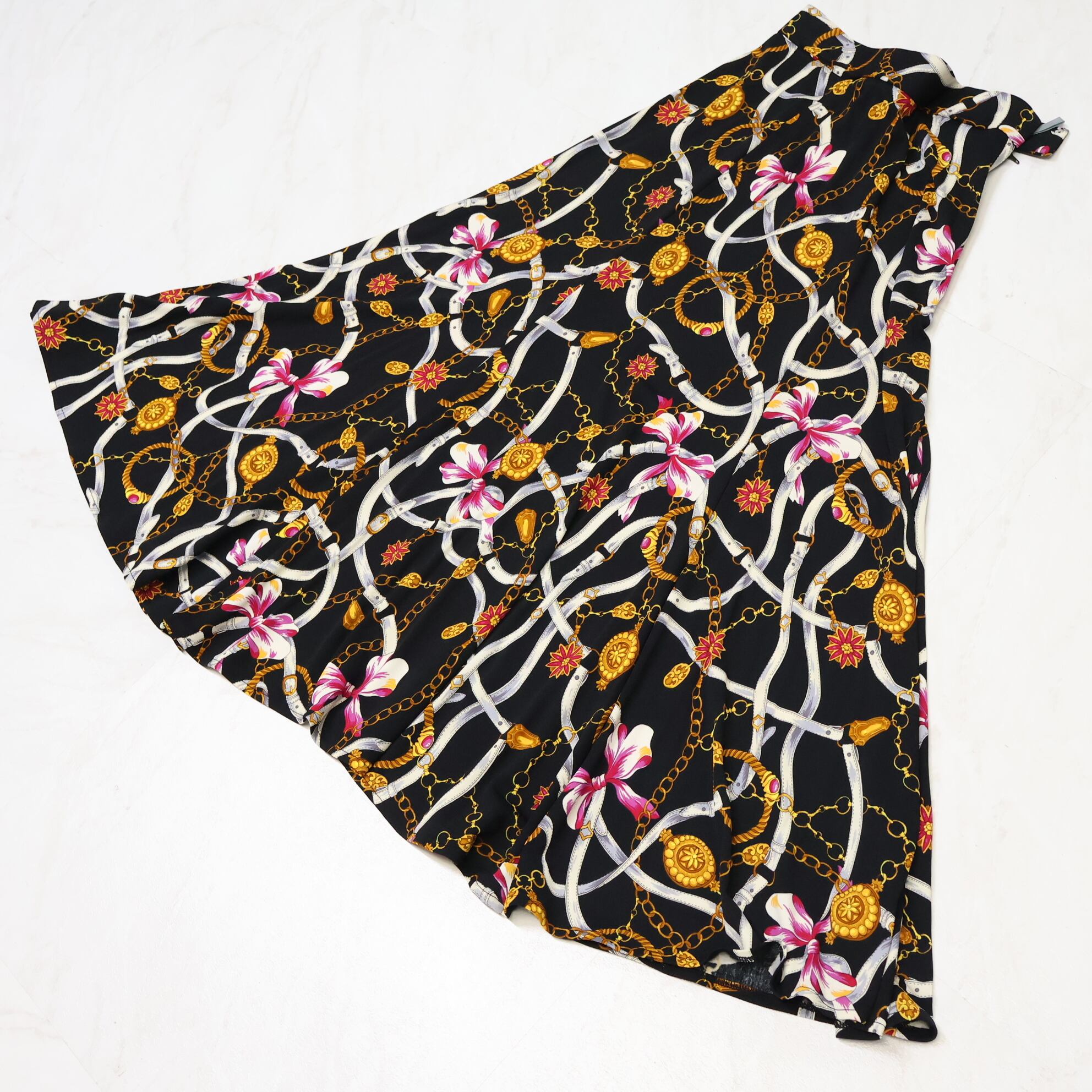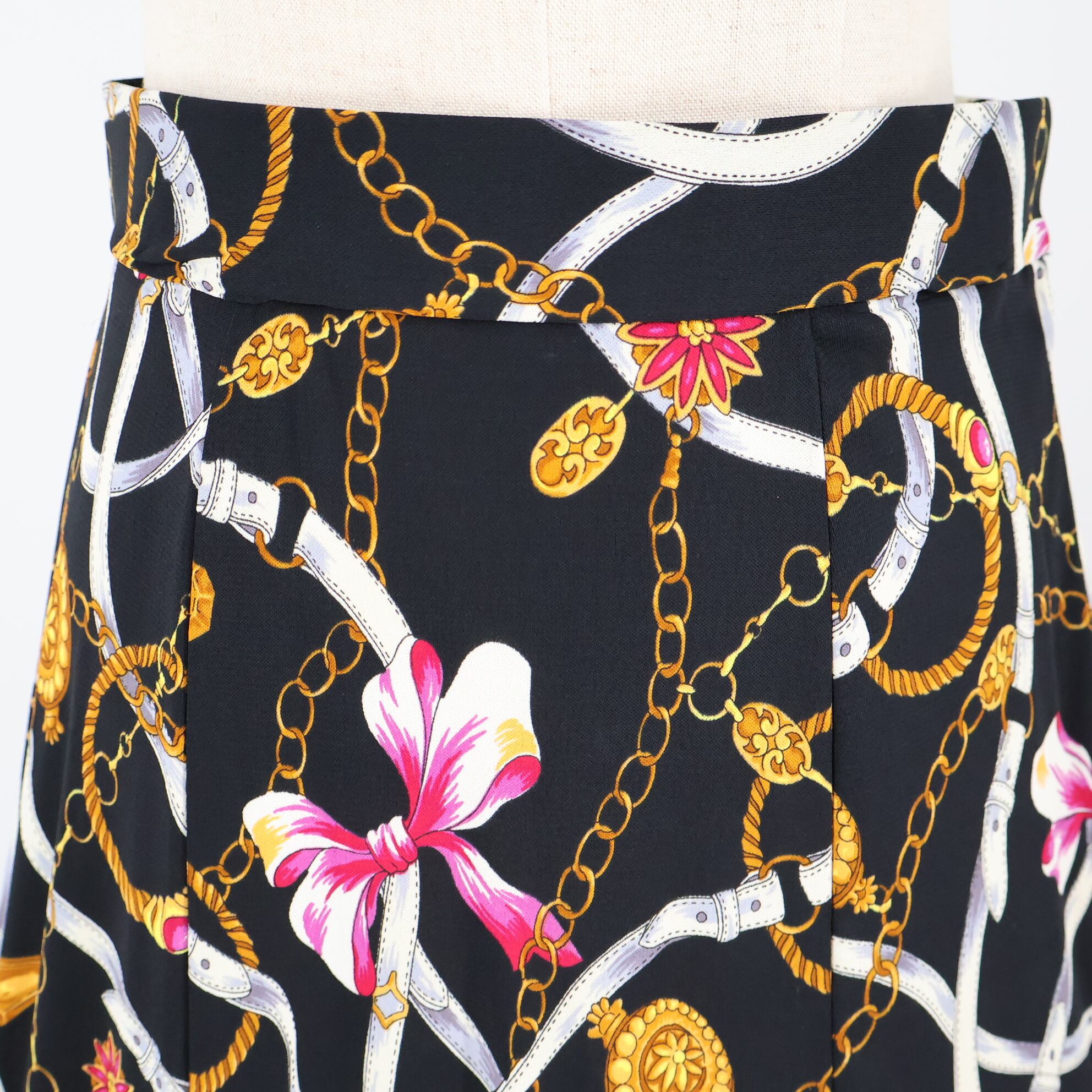【美品 日本製 社交ダンス衣装】ブラック Chacott チャコット スカート 柄 模様 レッスン 練習着 発表会 パーティ リボン 黒