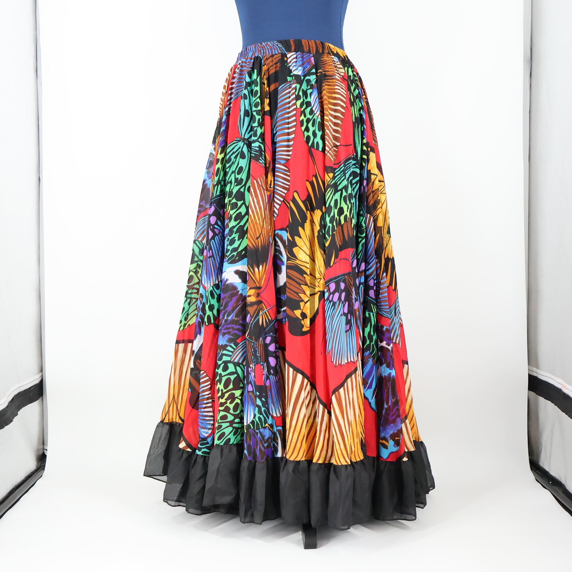【ベリーダンス用衣装】カラフル ジプシースカート 黒 赤 緑 青 オレンジ ボリューム 蝶柄 異国情緒 派手 レース生地 フリル