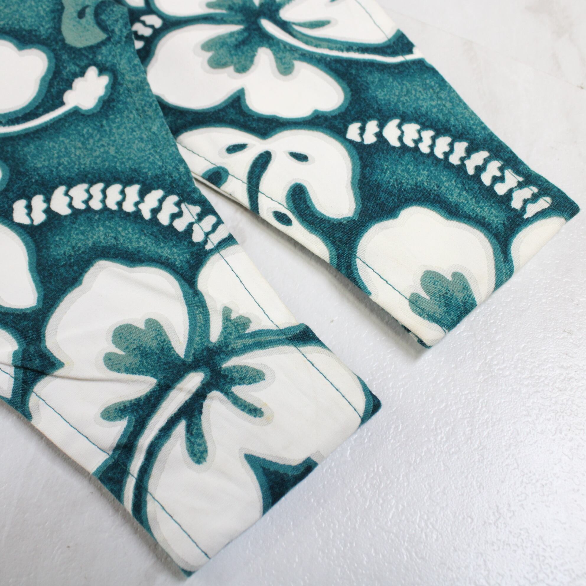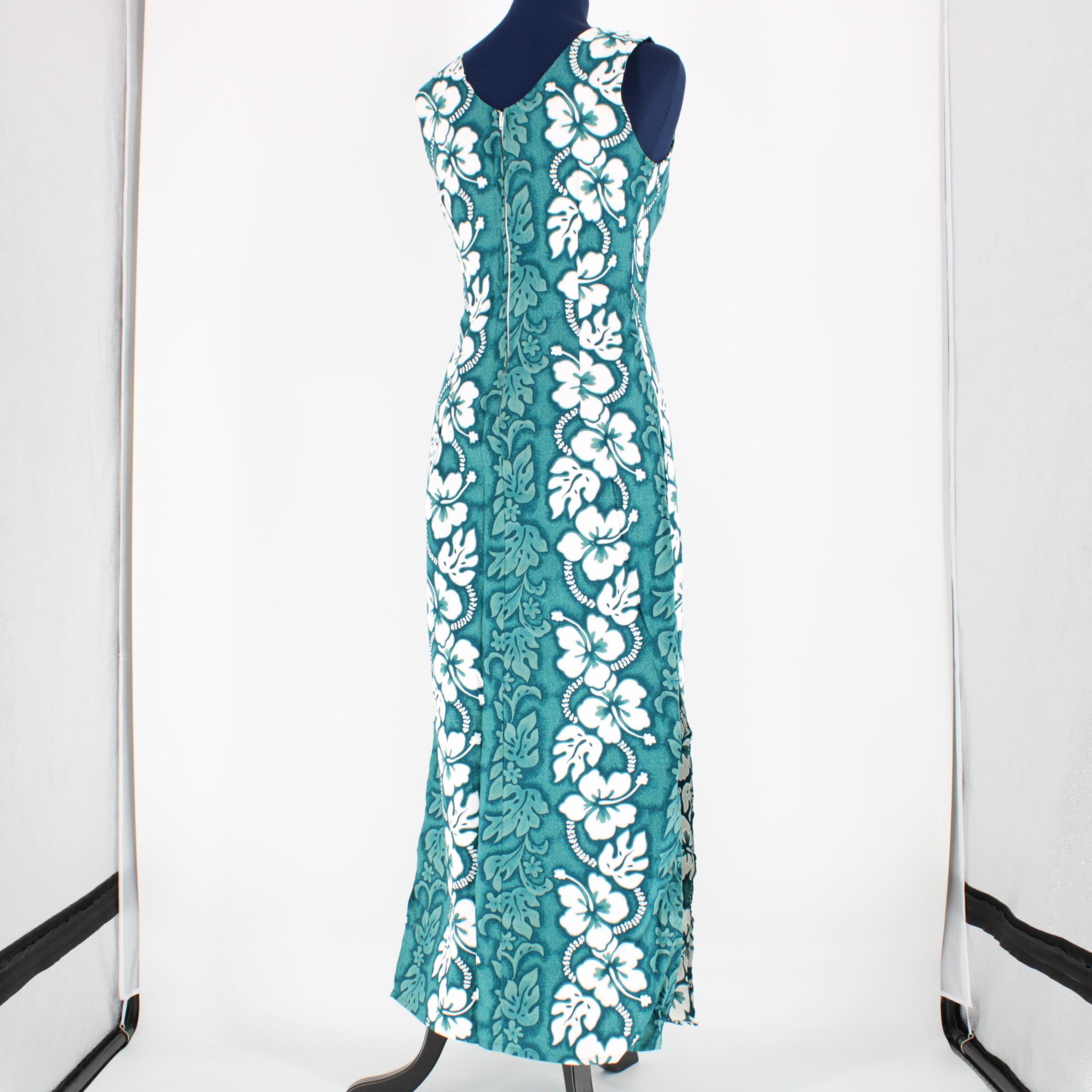【ハワイ製 フラダンス衣装】グリーン KY's international fashion ワンピース ドレス 緑 ブルー ホワイト ハイビスカス 花柄