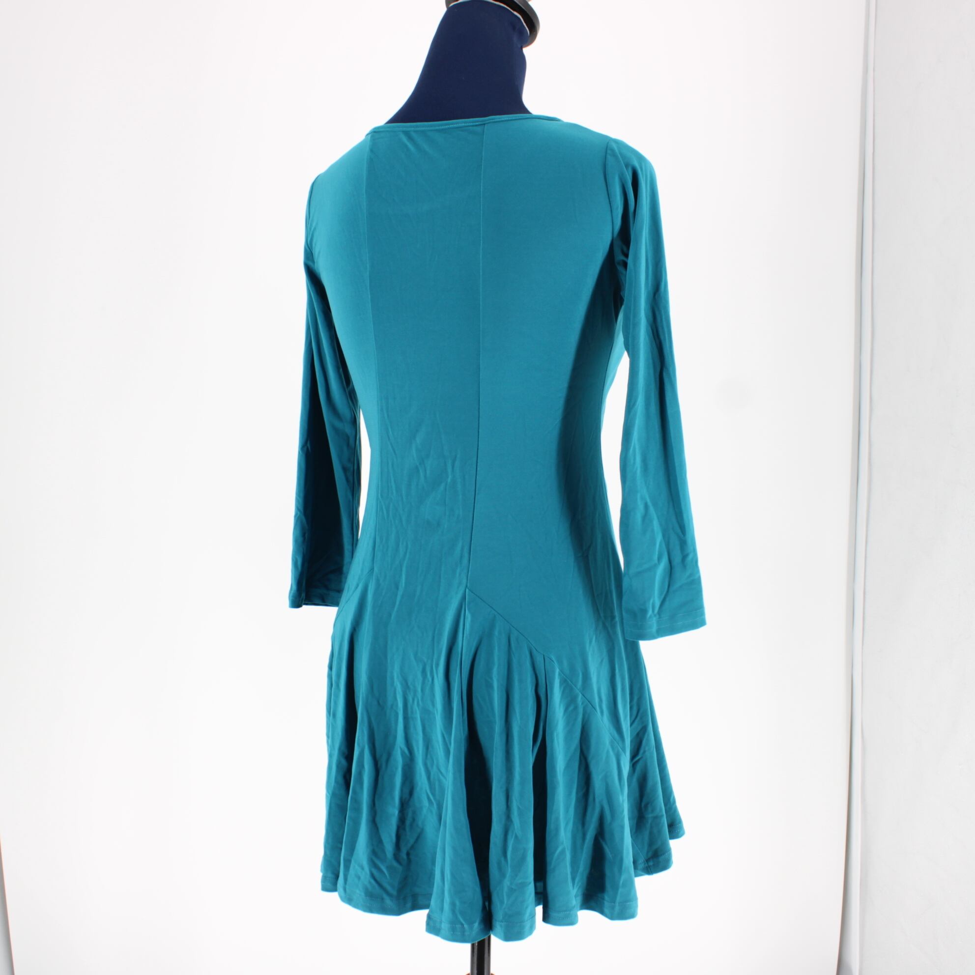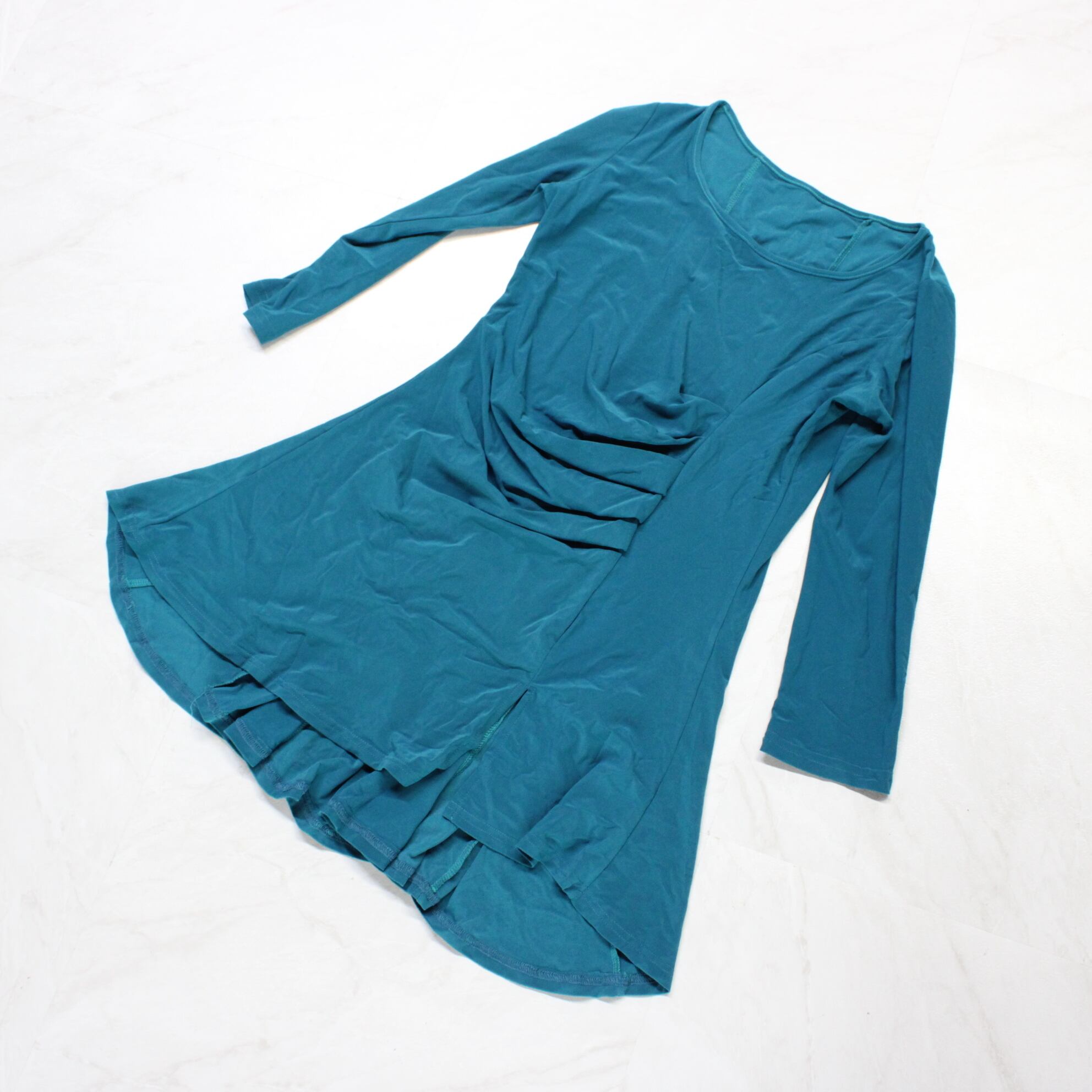 【美品 社交ダンス衣装】トップス 青緑 ピーコックブルー 無地 シンプル ドレープ かわいい 可愛い 上品 清楚 気品 シック